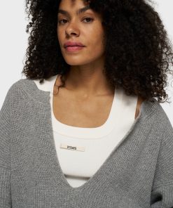10DAYS Women’s V-neck Knit Sweater Cashmere | Light Grey Melee | Light Grey Melee