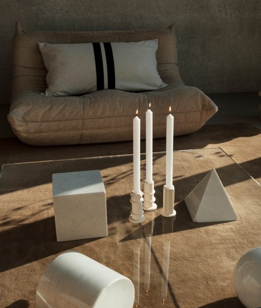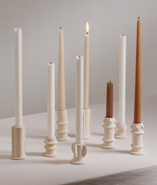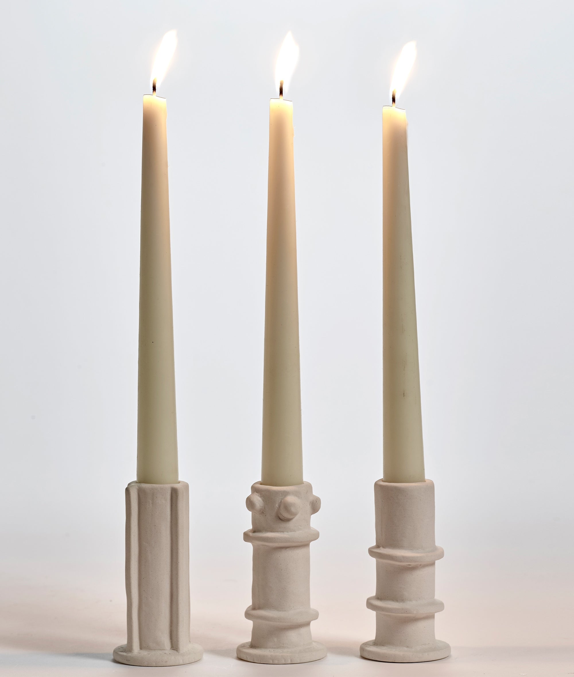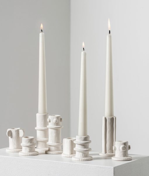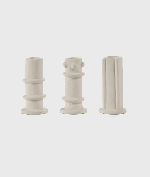 Set of 3 Serax 03 Molly candle holders, designed by Marie Michielssen. The earthenware candle holders are matt on the outside and glazed on the inside. The candle holders are finished by hand, making each piece unique. They are a graphic eye-catcher in any room. Dimensions: L 5 W 5 H 10 CM.|