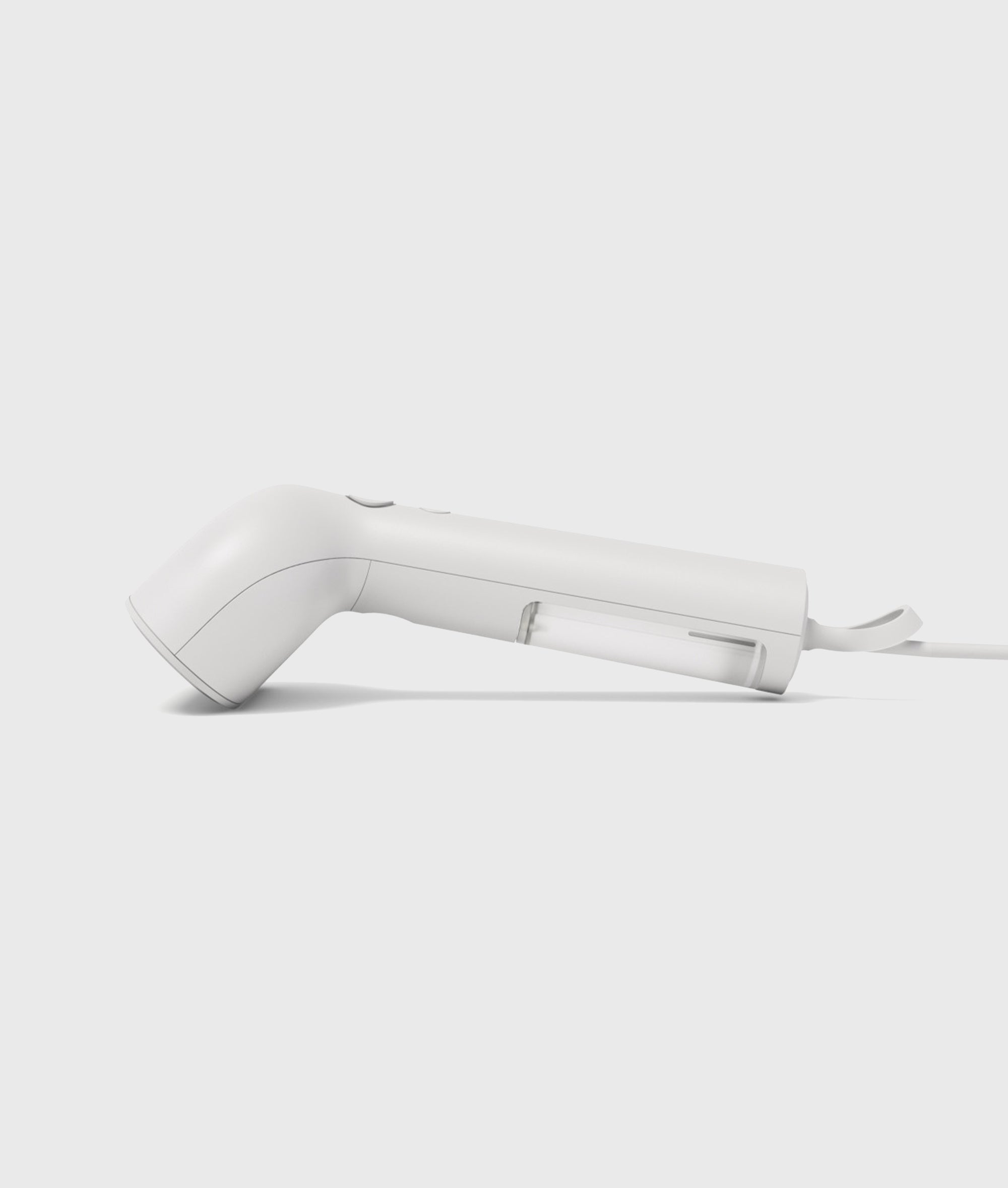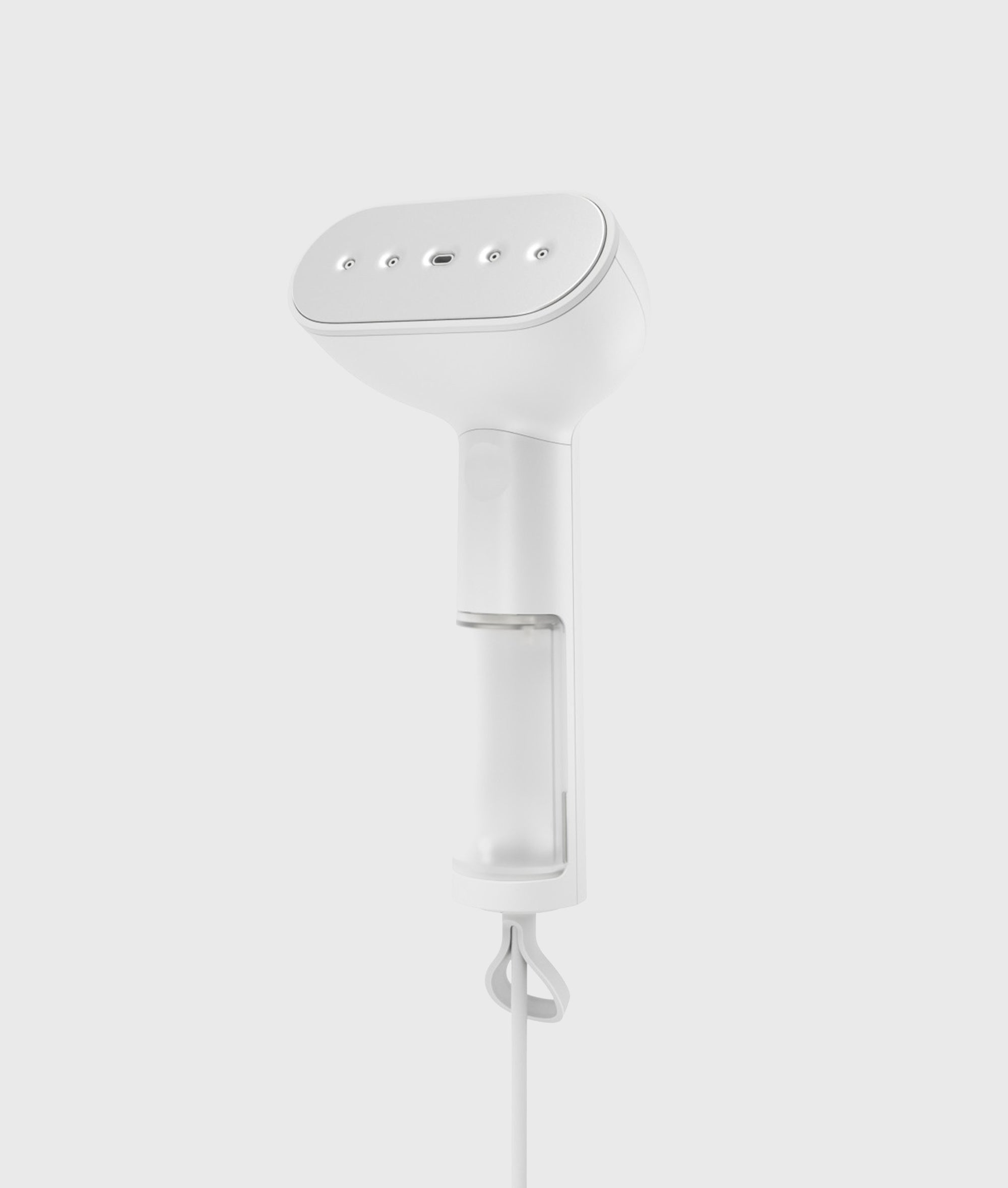 The Cirrus X Steamer from Steamery is a powerful handheld steamer designed to freshen your clothes and remove wrinkles. With its lightweight and portable design, it is ideal for home and travel use. Features: visible water level, hanging loop, on/off button, steam button, limescale traps, stainless steel front plate. Material: PP plastic | Water reservoir: 85 ml | Power cord: 2 m | Weight: 750g | Dimensions: 31.1 x 14 x 9.1 cm | Start-up time: 20 seconds | Steam production: 18–20 g/minute|