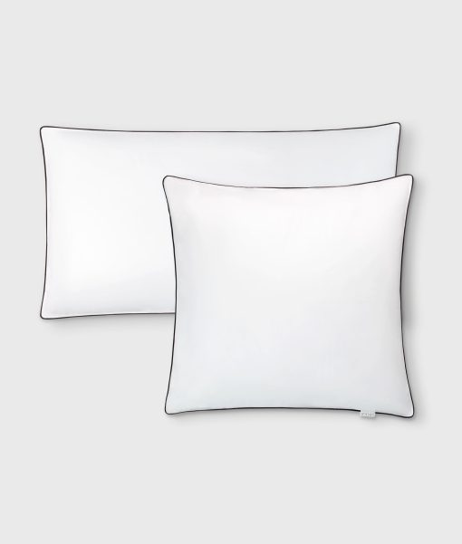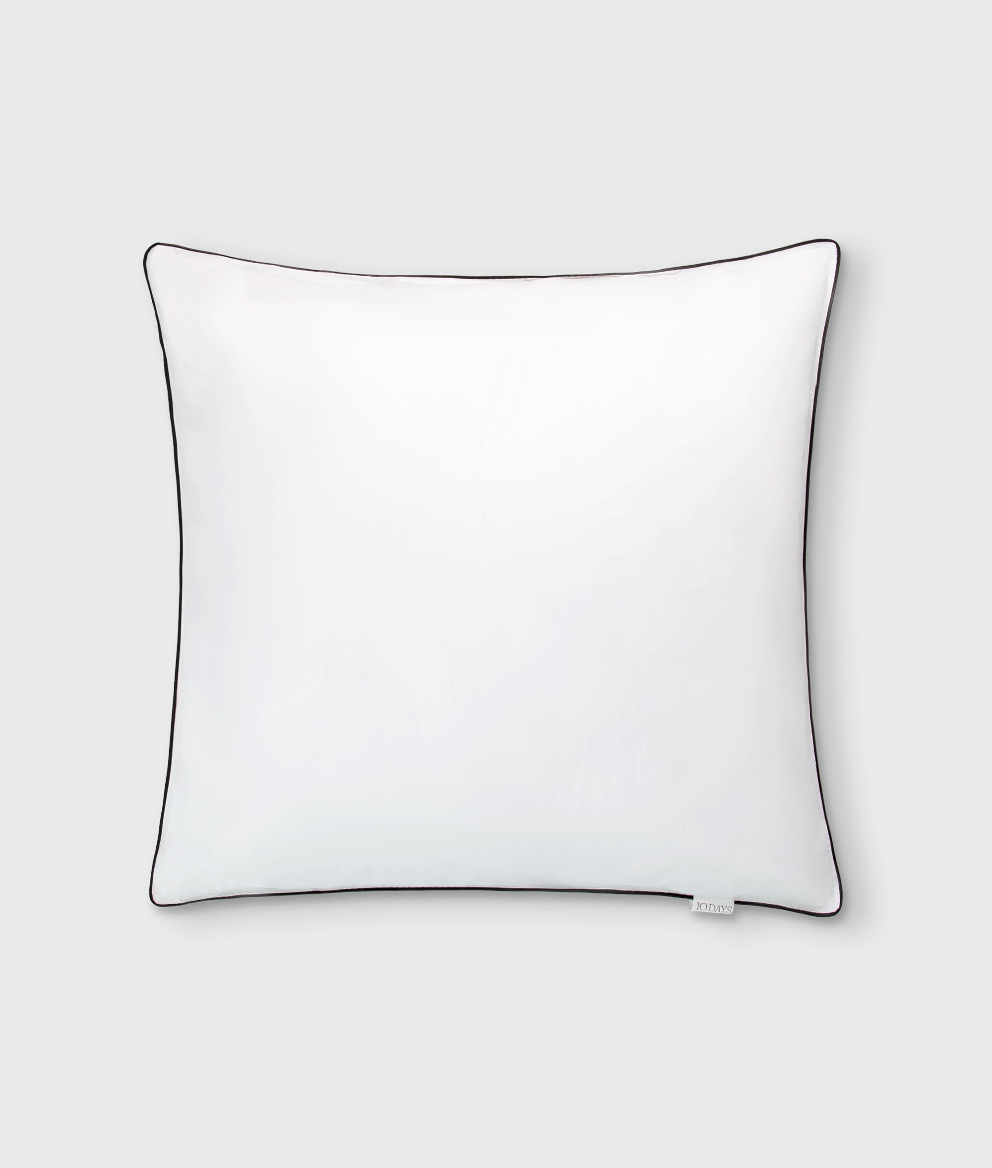Pillow filling in size 65 cm x 65 cm. The cover is made of 100% cotton and the filling is 100% polyester fake down. Features a black trim along the edges and a 10DAYS label. The perfect pillow filling for your 10DAYS pillow covers.|