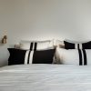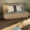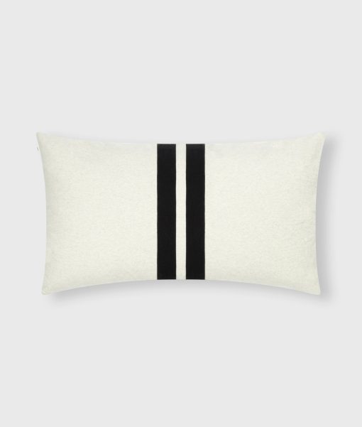 Rectangular cushion cover made from super soft signature 10DAYS babyfleece. Features a zipper, two large vertical herringbone tape stripes on the front and a small label in the side seam. Size: 50 cm x 90 cm.|