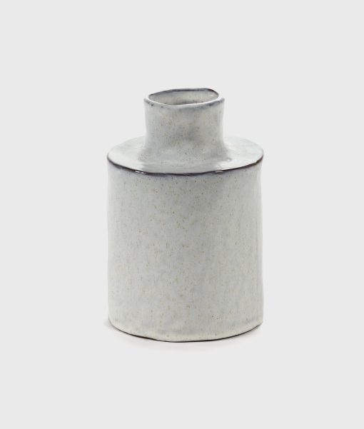 Small Serax vase, made of glazed stoneware. Designed by Marie Michielssen. The white Héléna vase stands out because of its simple cylinder shape. The handicraft is clearly visible in their unusual shapes. The vases are finished by hand, making each piece unique. Dimensions: L 10 W 10 H 15 CM.|