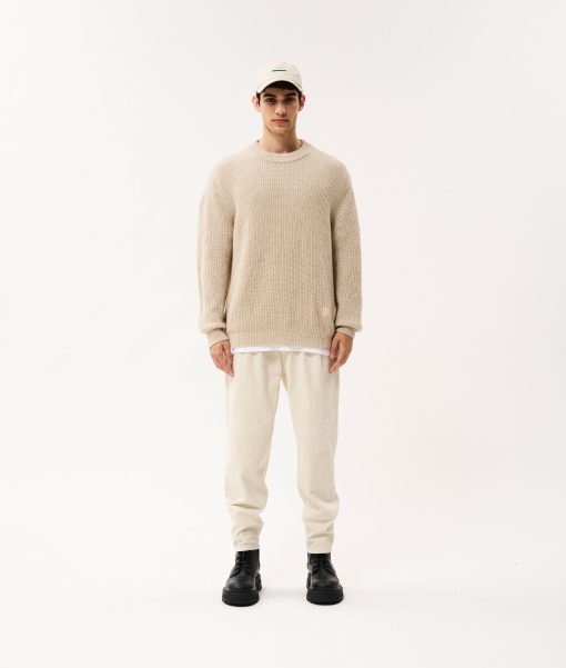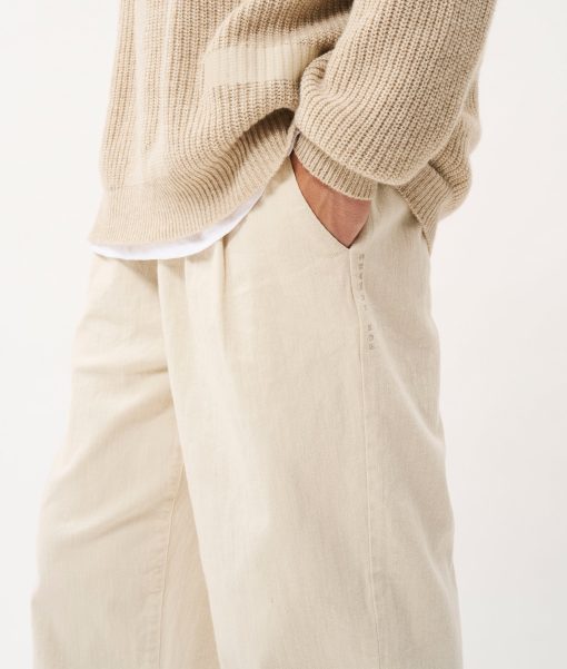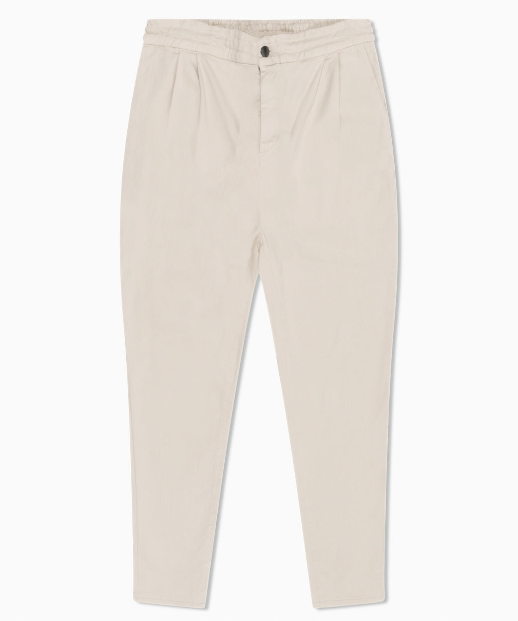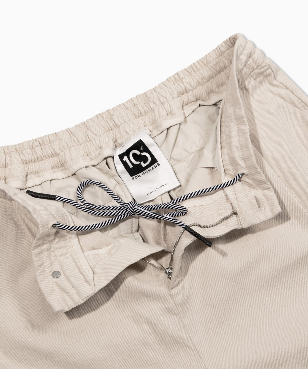 Regular fit trousers in cotton twill. With button closure, side pockets and FOR HUMANS embroidery along the side seam. Semi-elasticated waistband for ultimate comfort. Finished off with a special message on the inside of the pants.|