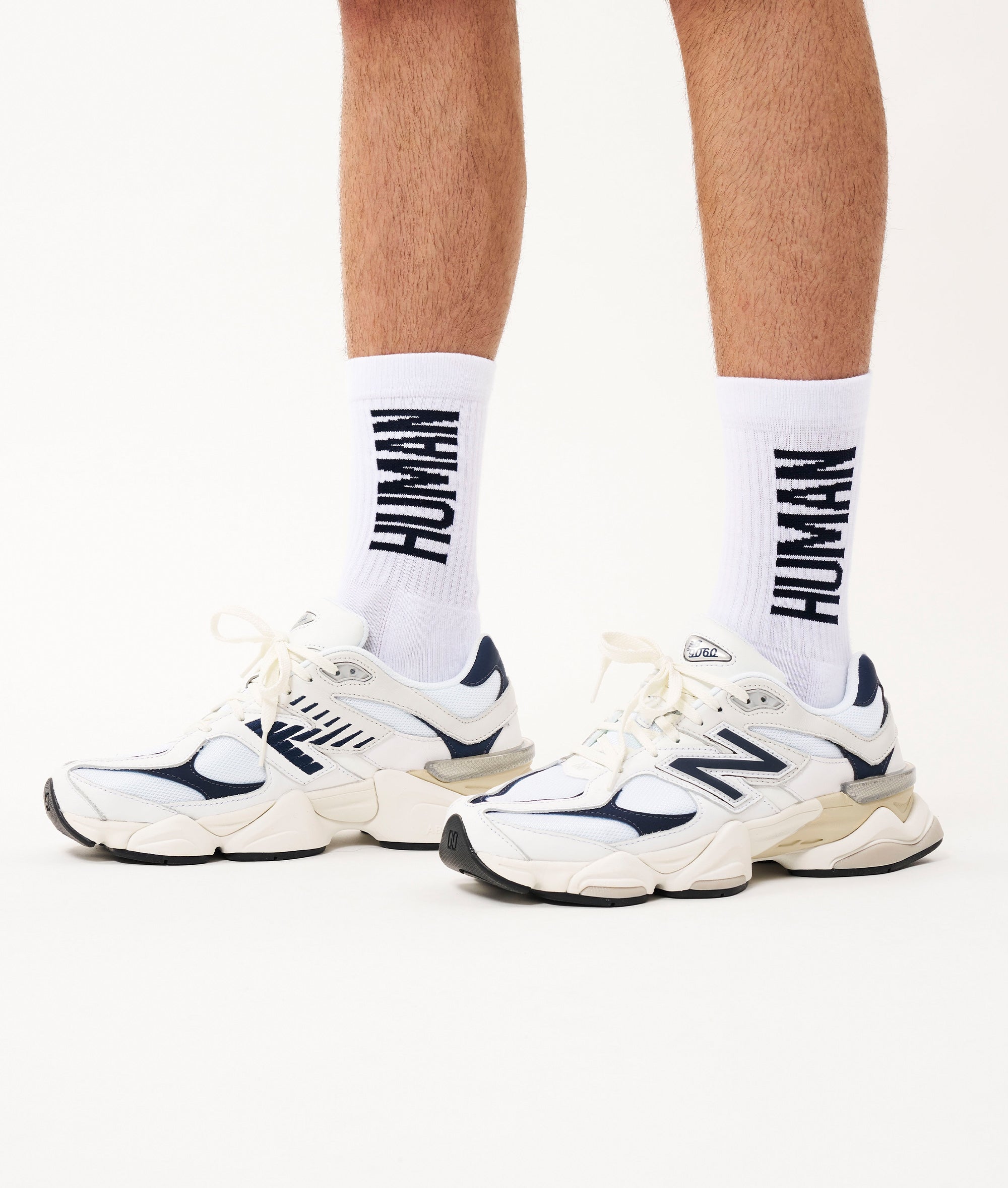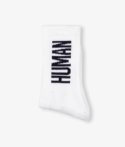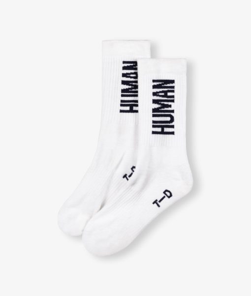 Sporty socks with woven HUMAN logo. Made from a comfortable cotton blend. Extra thick and medium height.|