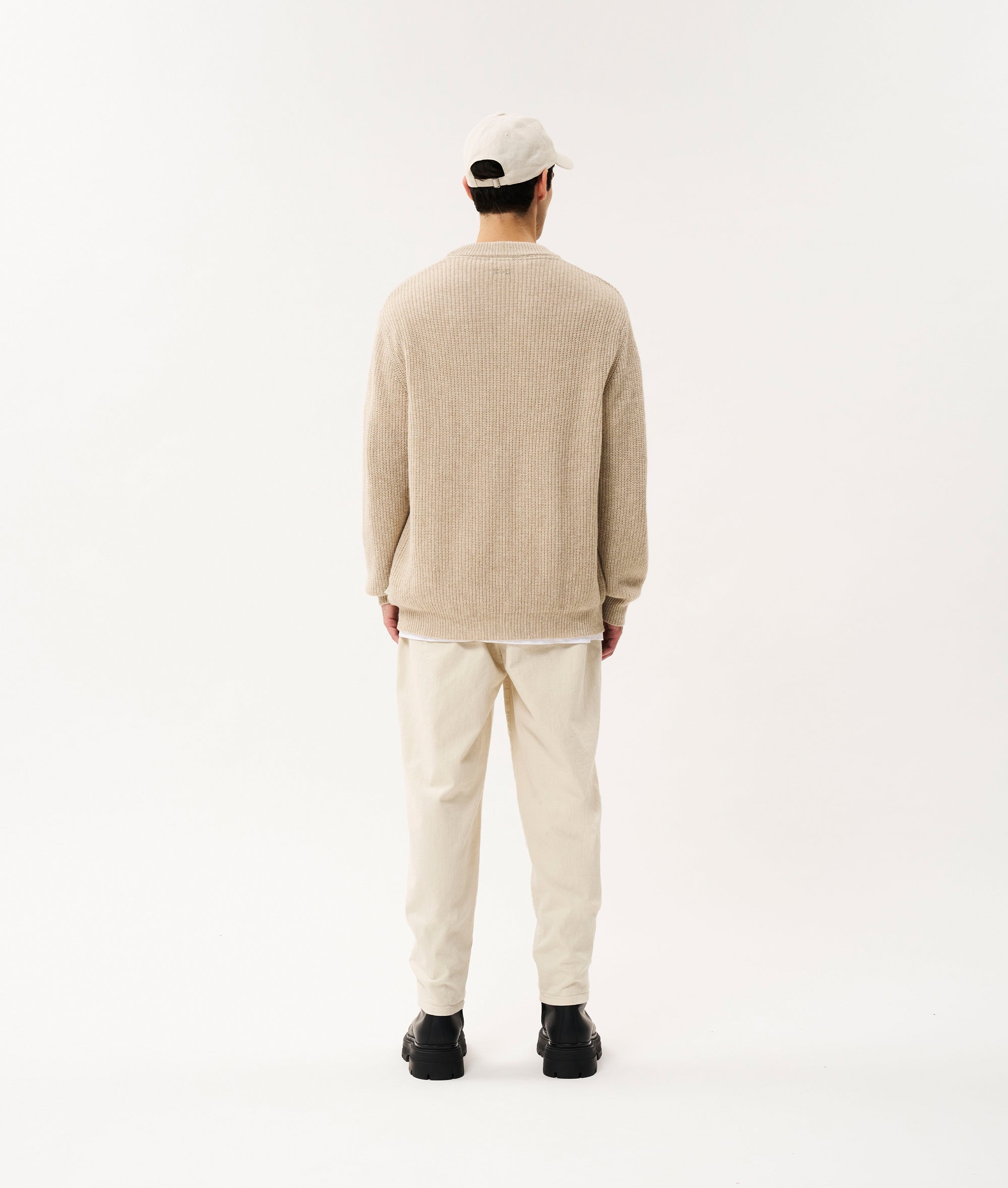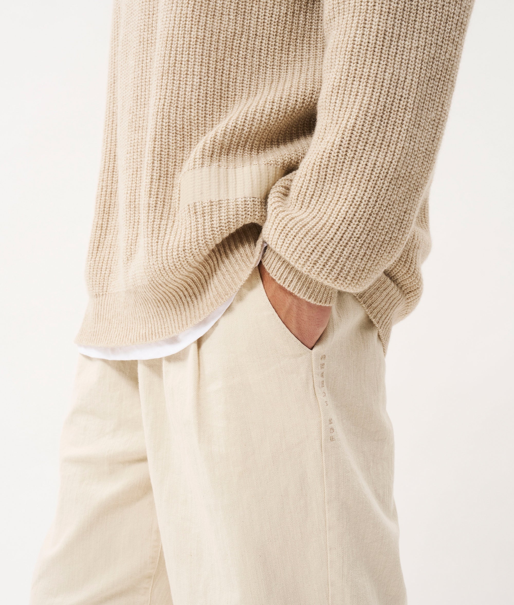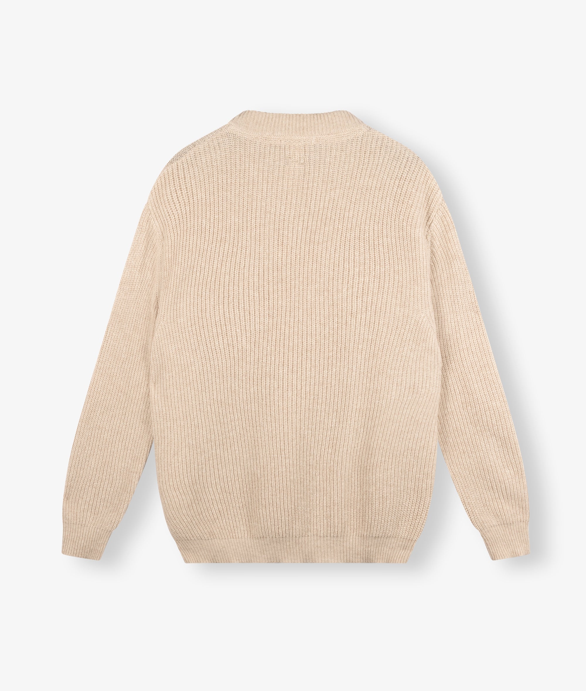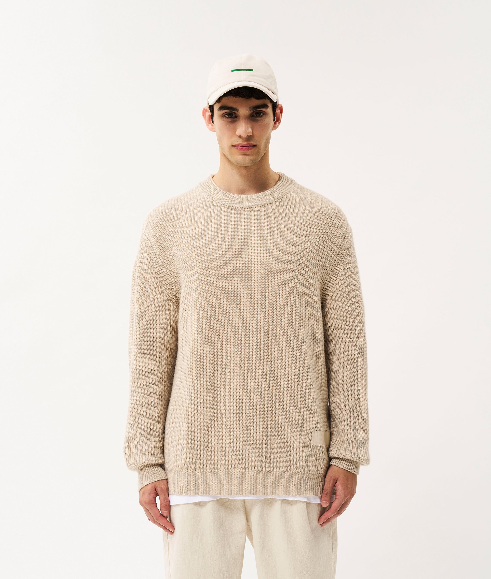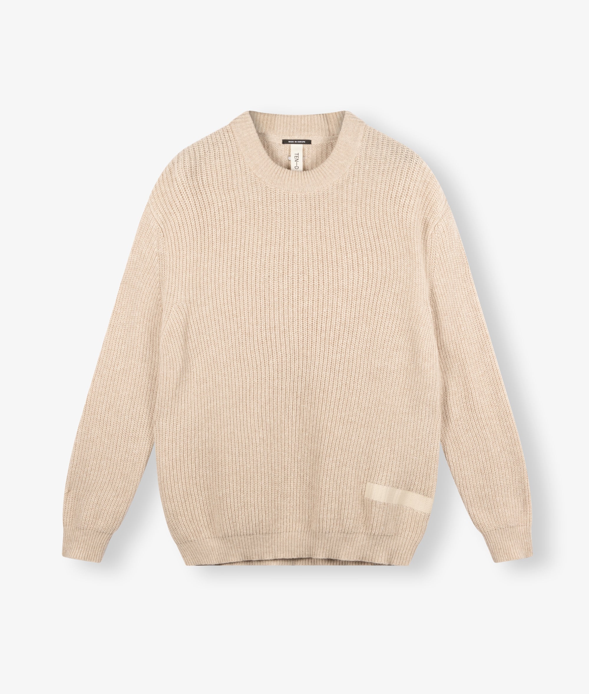 Relaxed fit knitted sweater, made from a cashmere wool blend. The jumper features rib knitted edges, a big stripe waterprint on the front of the sweater, a ‘T-D’ embroidery at the bottom of the left sleeve and a ‘FOR HUMANS’ embroidery on the back.|