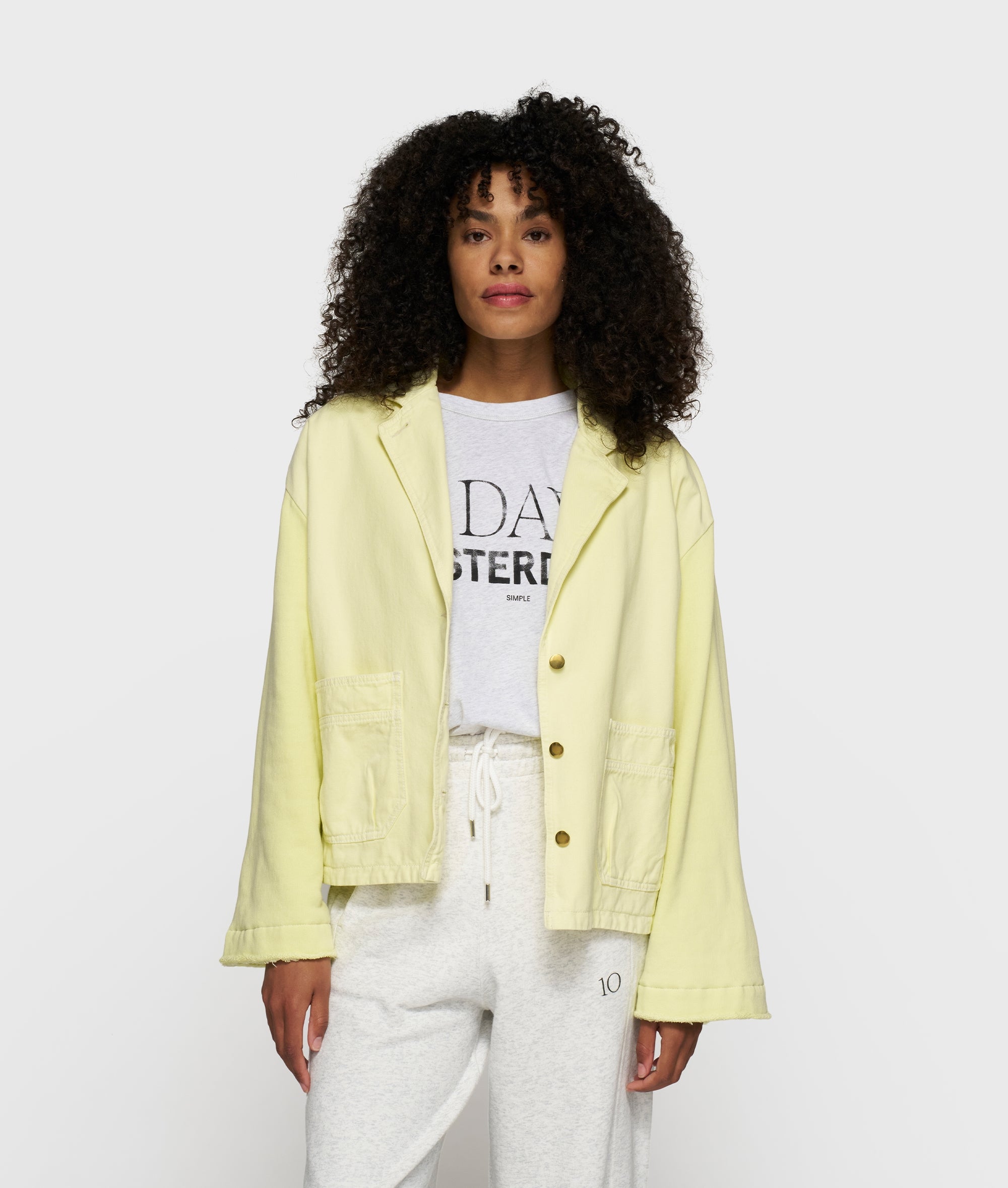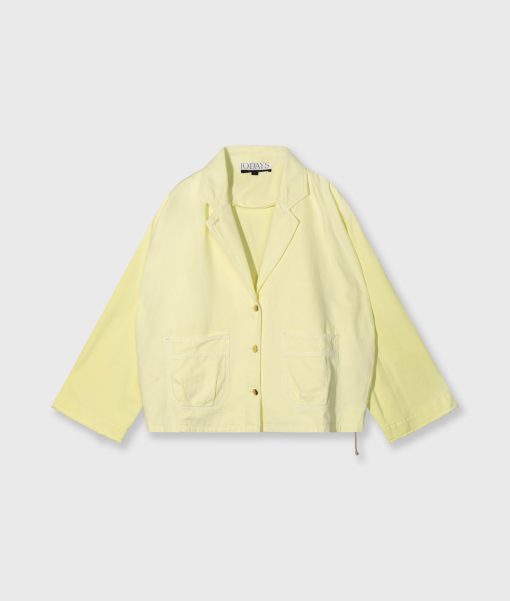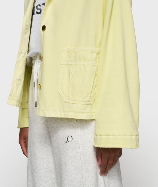 Oversized fit boxy jacket made from soft GOTS-certified organic cotton. Features patch pockets, sweat fabric sleeves, button fastening, a ’10’ monogram embroidery on the chest pocket and an internal tunnel drawstring detail on the back panel.|
