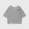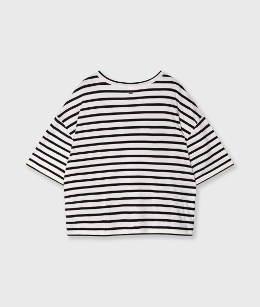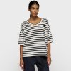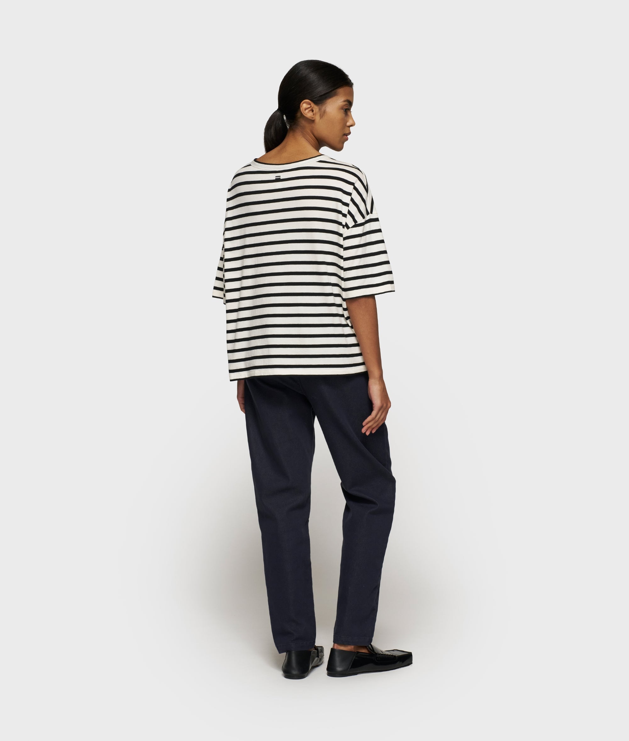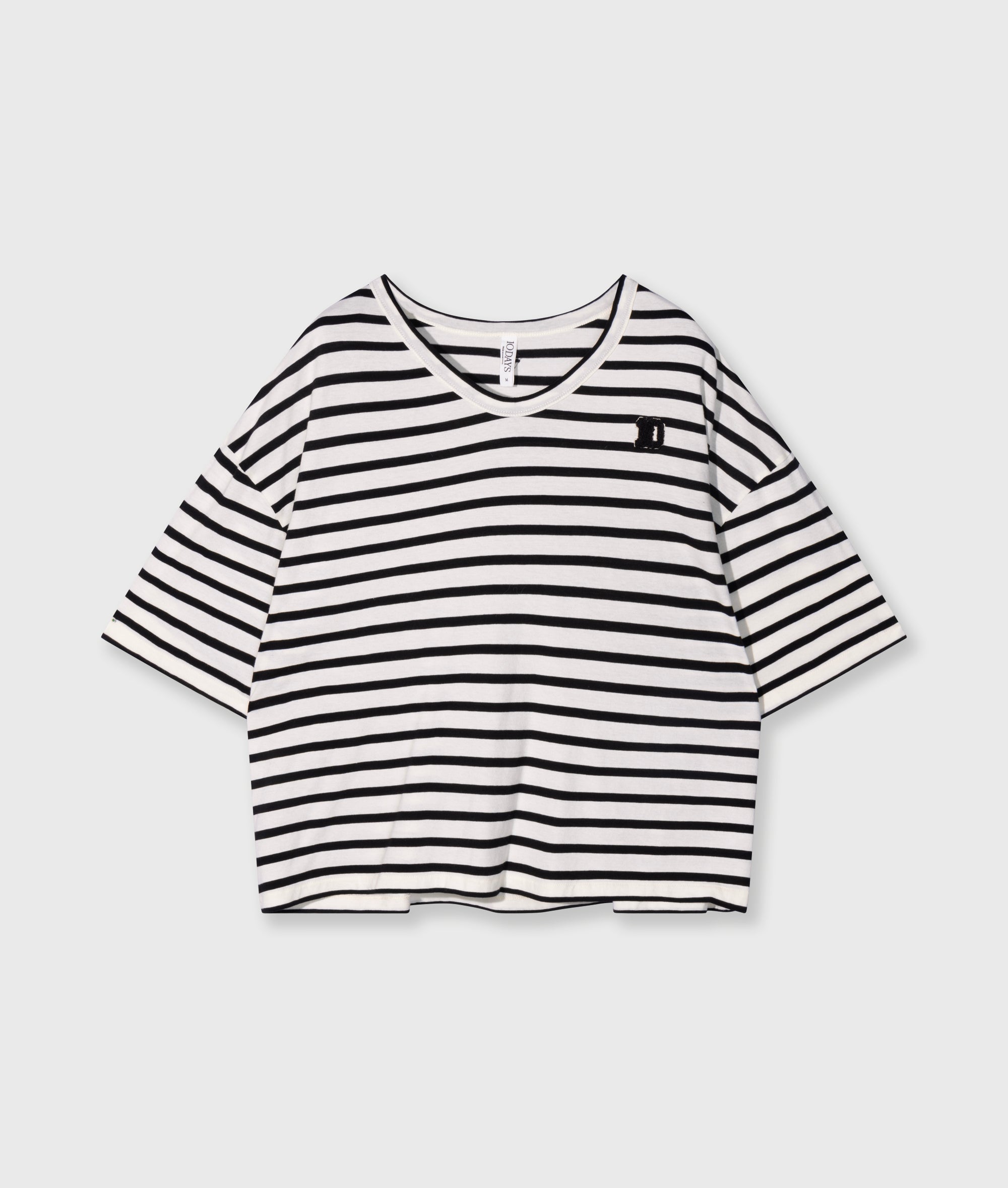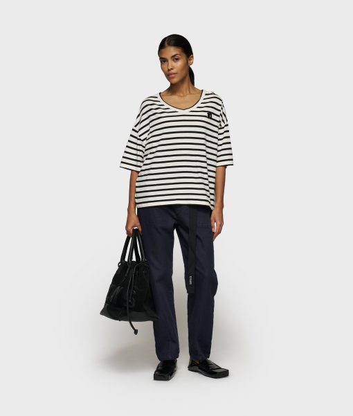 Oversized fit V-neck T-shirt, made from GOTS-certified organic cotton washed jersey. Features a mini stripes logo embroidery on the back and a mini ’10’ patch on the left chest.|