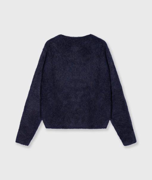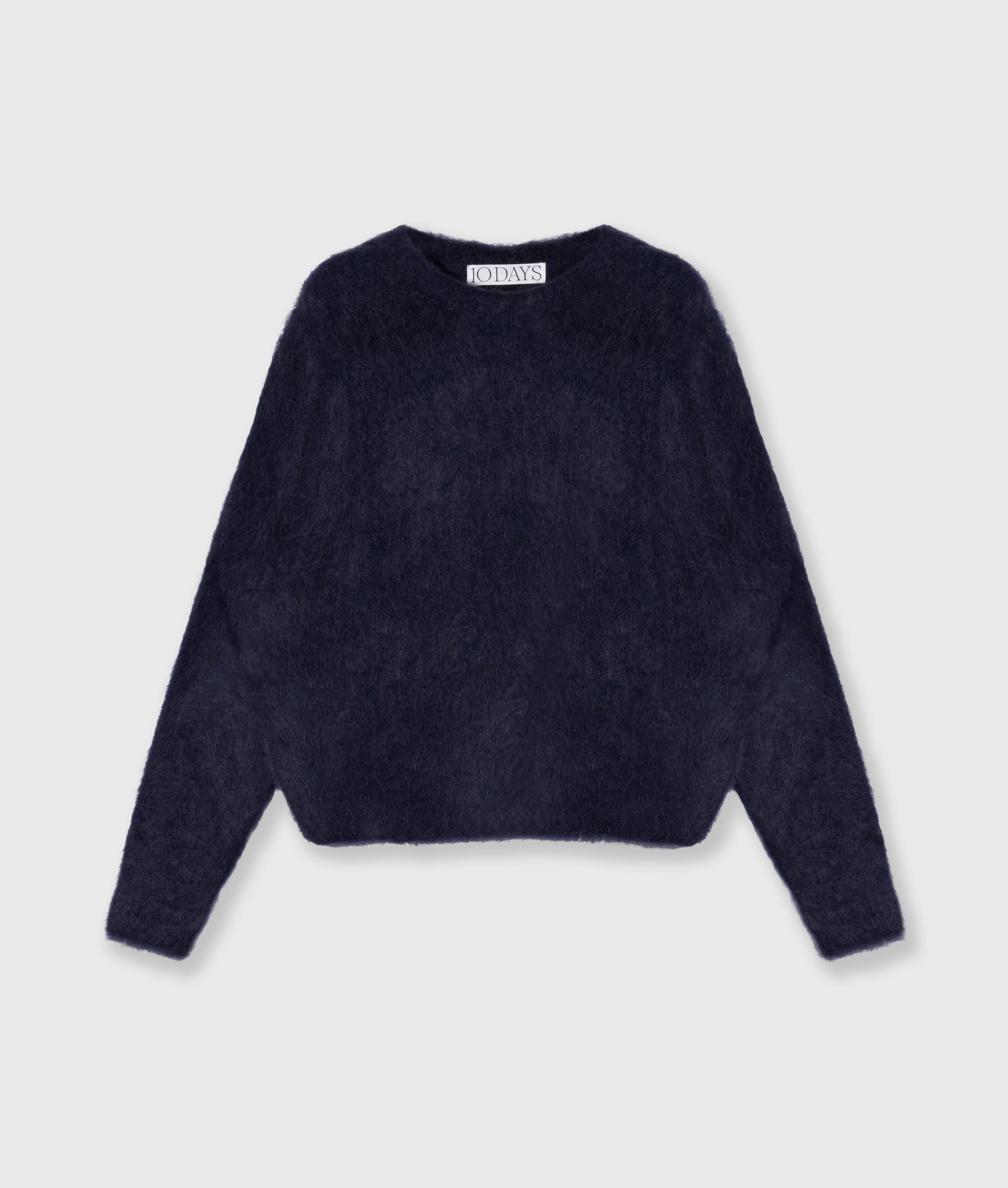 Relaxed fit cropped knitted sweater, made from a soft brushed hairy wool blend. Features rib-knitted trims with elastane and a ’10’ monogram embroidery on the back.|