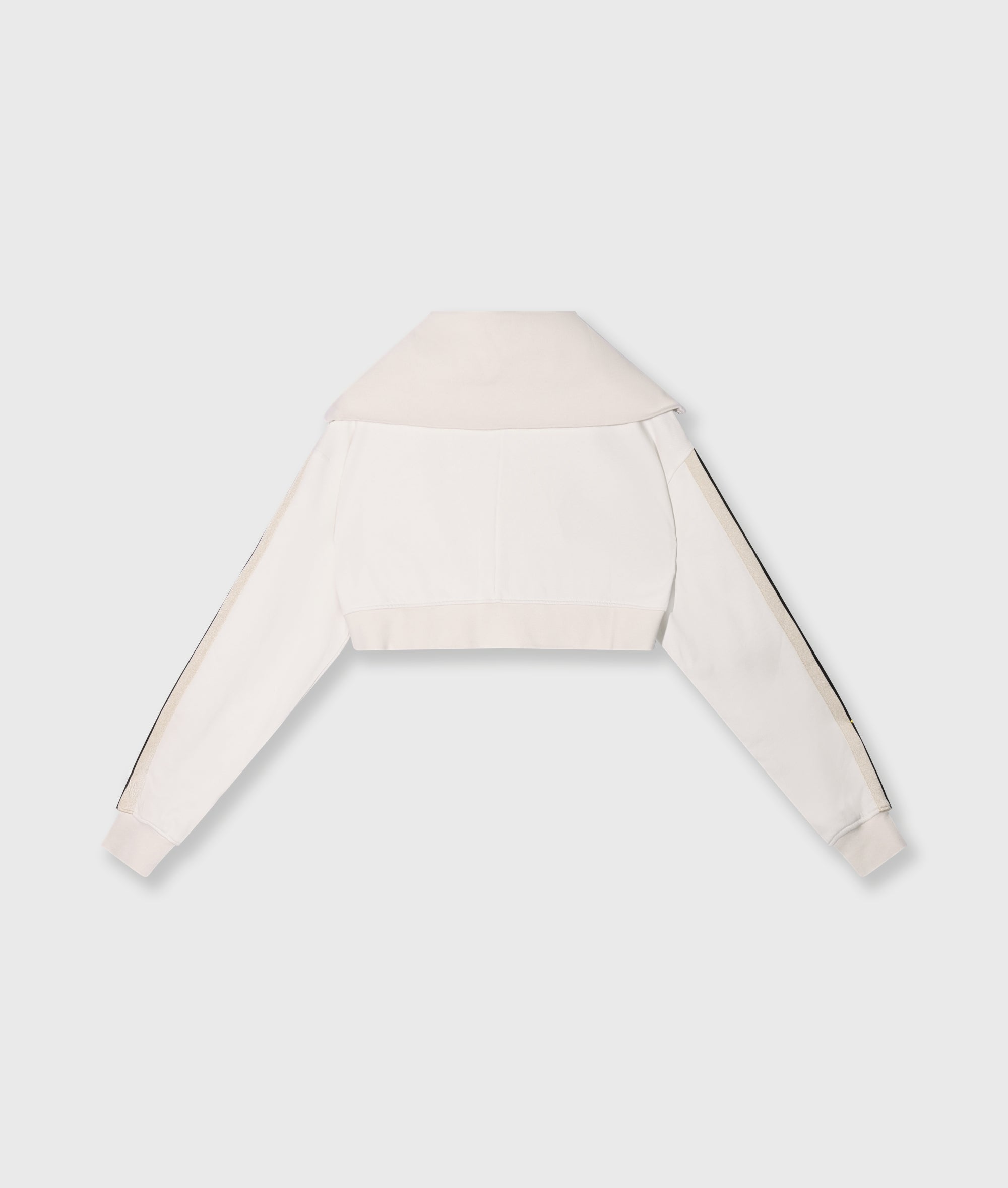 Regular fit cropped zip cardigan, made from soft cotton fleece. Features a ribbed collar, dropped shoulders, tape details along the sleeves, a ’10DAYS’ canvas label on the back and a ’10’ monogram embroidery on the left sleeve.|