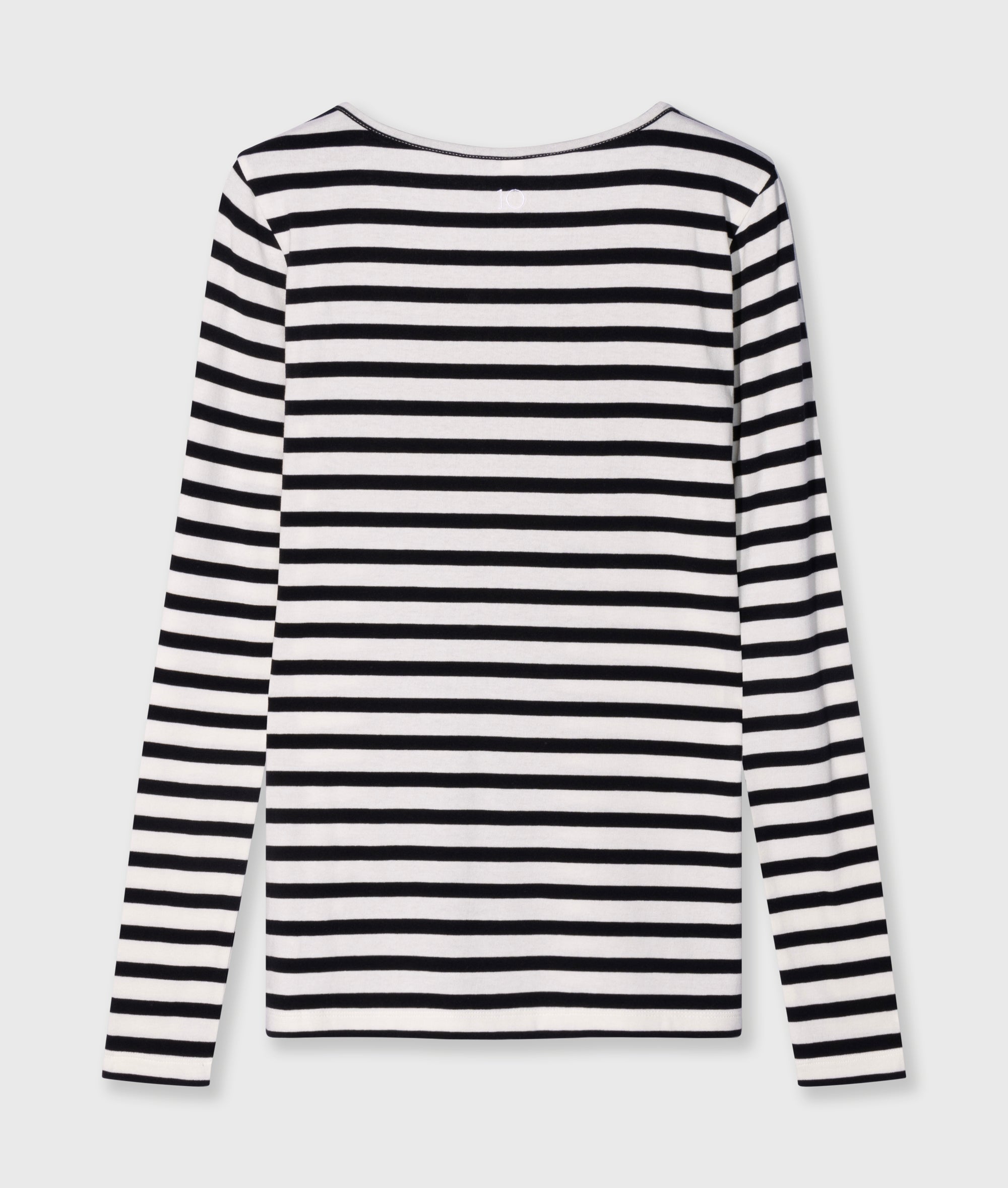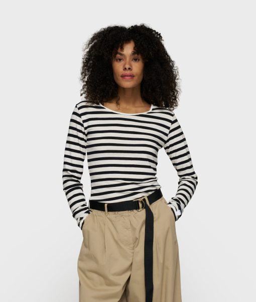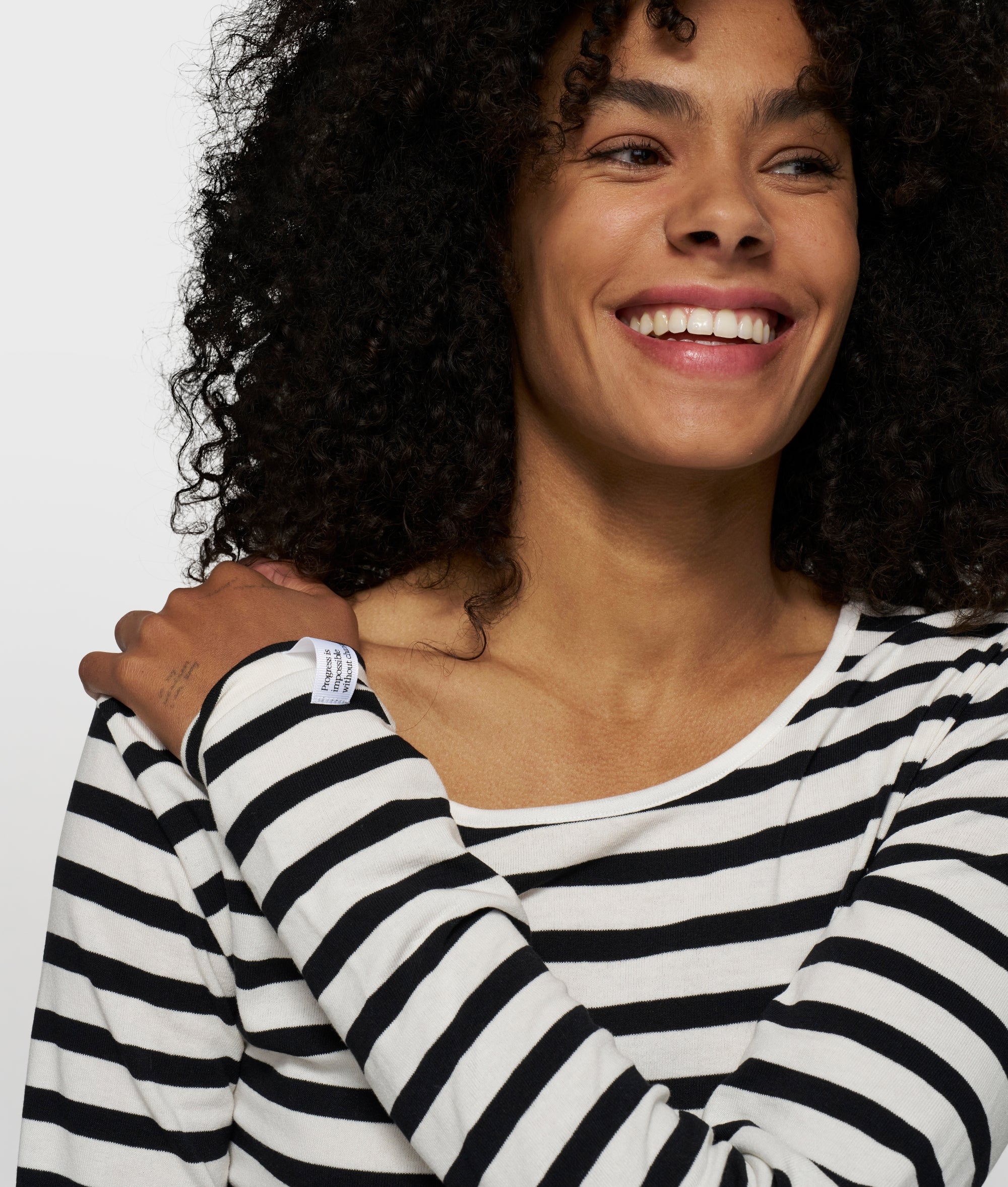 Slim fit striped top with extra-long sleeves, made from cotton jersey. Features a ’10’ monogram embroidery on the back and a tagline label at the left hem.|