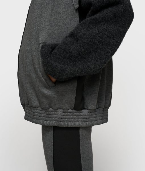 Oversized fit jacket, made from supple scuba fabric. Features a stand-up collar with press button closure, side pockets, an elasticated waistband, zip fastening, raw edge seam finishes and a ’10’ monogram embroidery on the back.|
