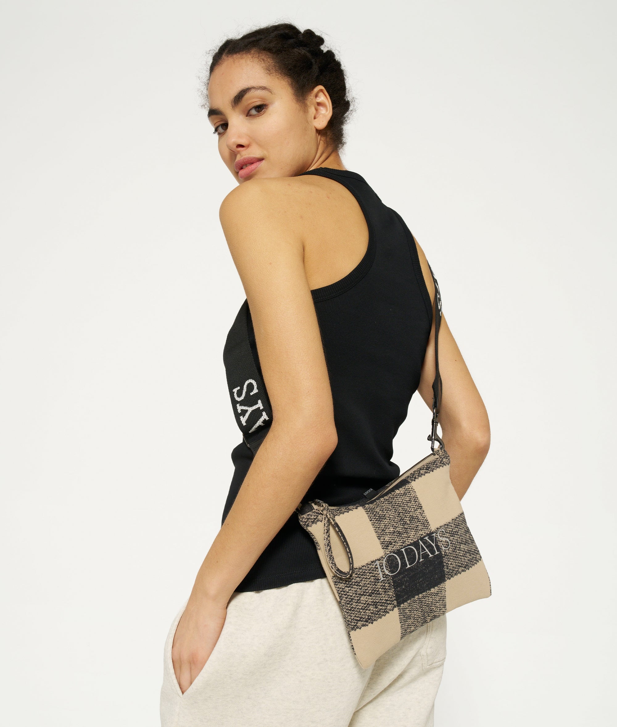 10DAYS FOR GOOD Upcycled. Small bag with zipper and 10DAYS logo, made of left-over padded cotton fleece. Use the bag as an easy clutch, a make-up bag, or wear it as a shoulder bag in combination with our logo straps. Dimensions: 25 x 19 cm. Please note: the shoulder strap does not come with the pouch, we sell these seperately.|
