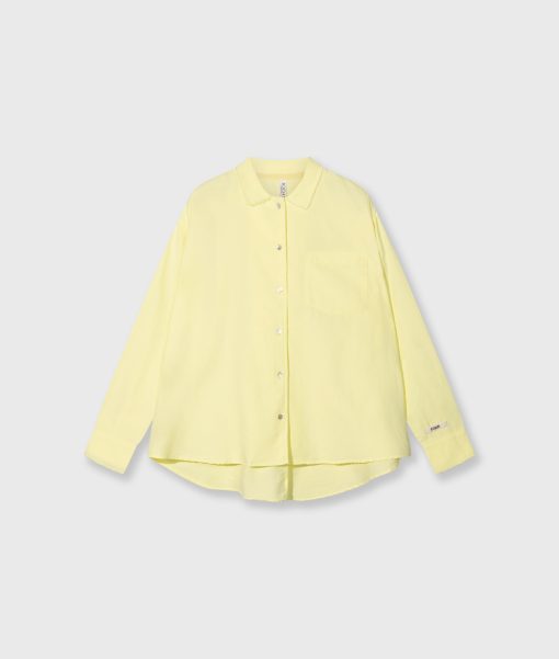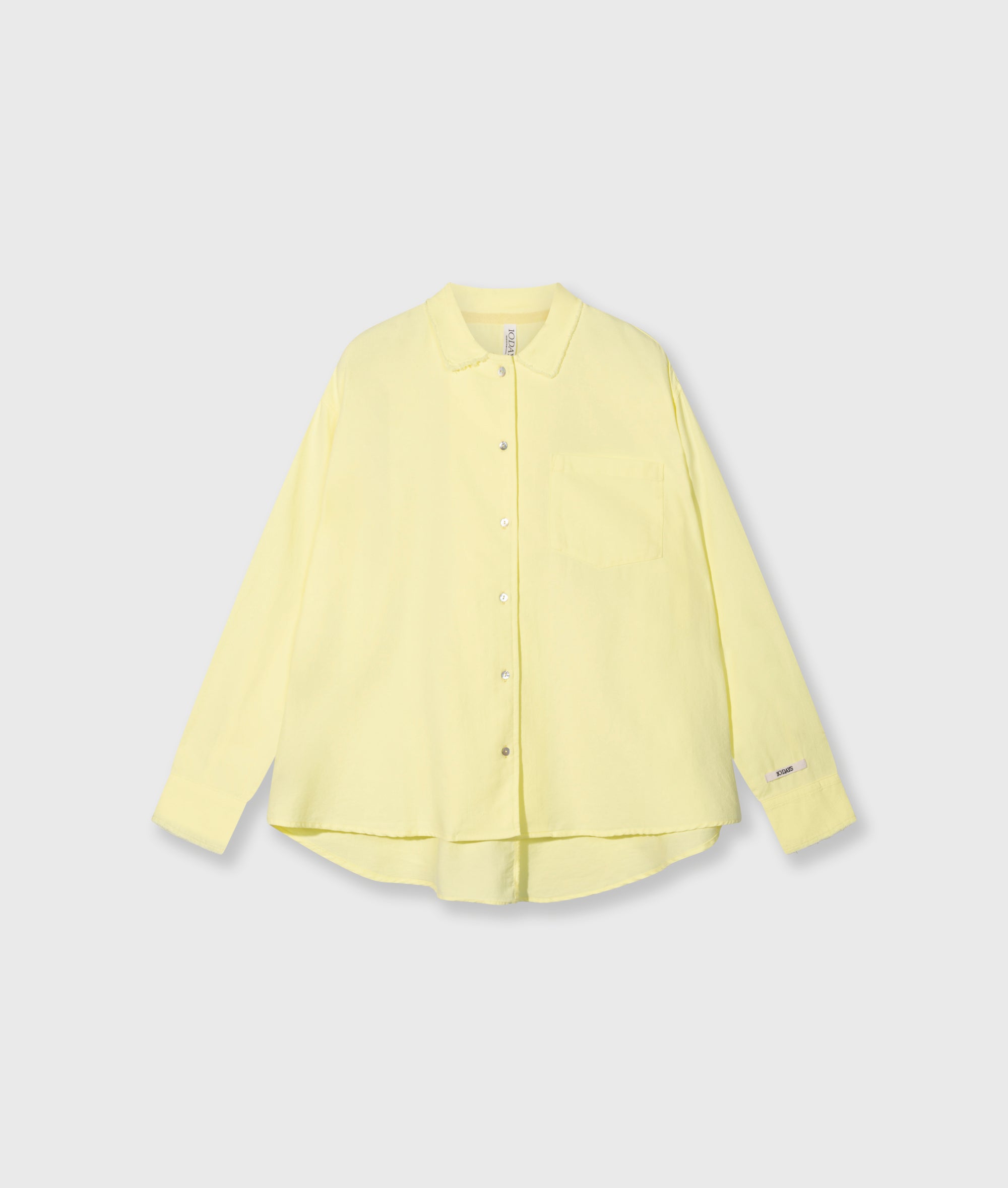 Relaxed fit pique shirt made from GOTS-certified organic pique cotton. Features a patch chest pocket, a raw edge collar with button fastening, a round hem, mini stripes logo embroidery on the back and a 10DAYS label at the bottom of the left sleeve.|