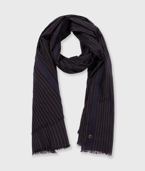 Rectangular pinstripe scarf, made from soft cotton. Features raw edges, a tape detail along one hem and a ’10DAYS’ label along the edge. Size: 100 x 200 cm.|
