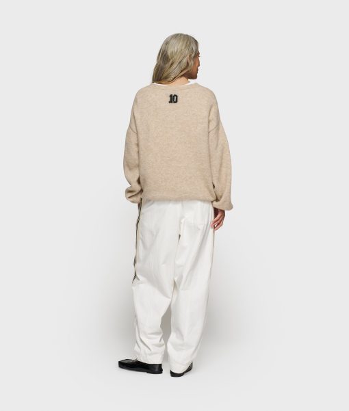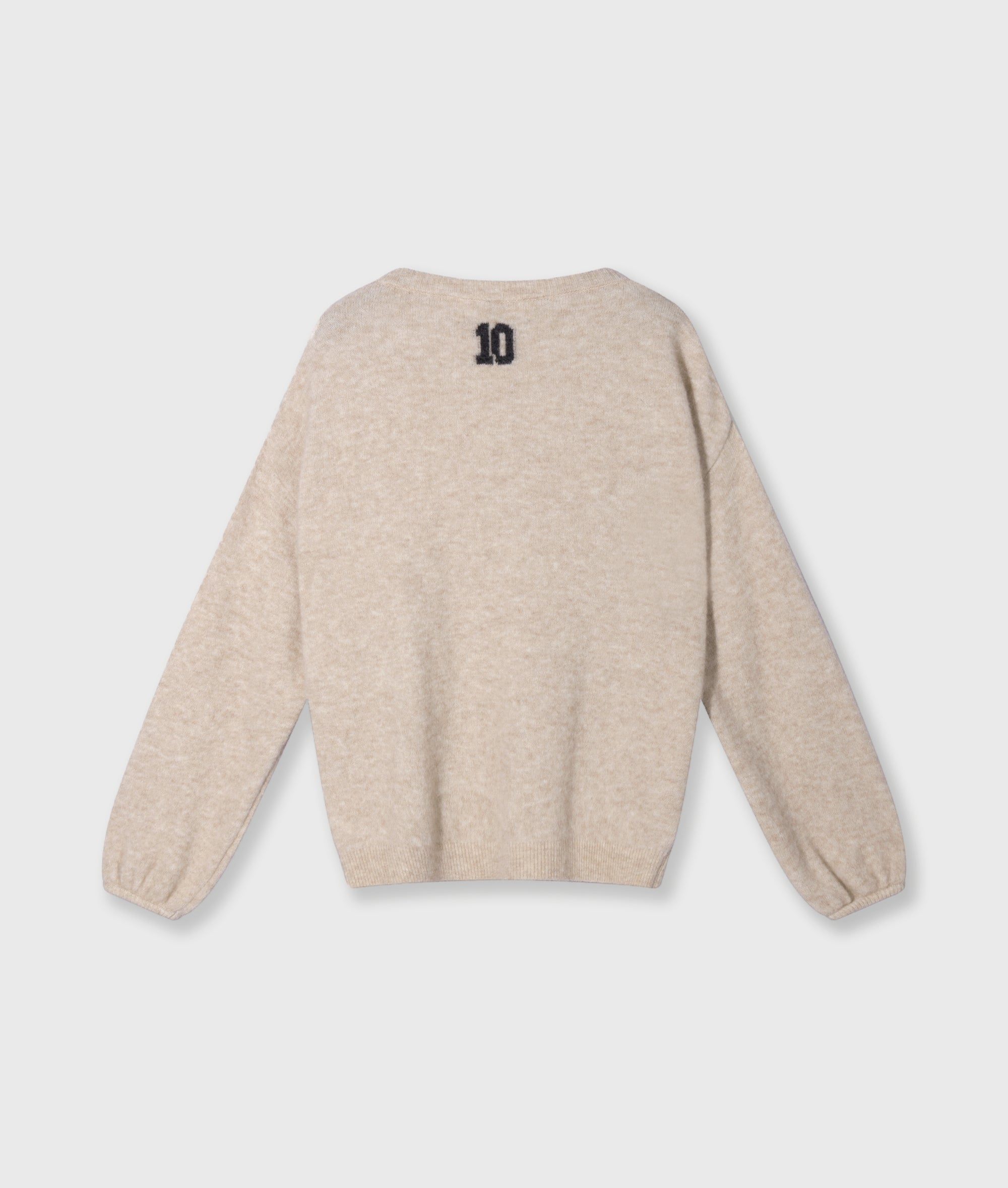 Regular fit knitted jumper, made from a soft alpaca wool blend. Designed with ribbed trims, a tagline label at the bottom of the left sleeve and a ‘baseball 10’ intarsia on the back.|
