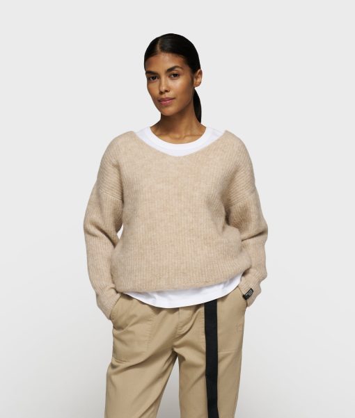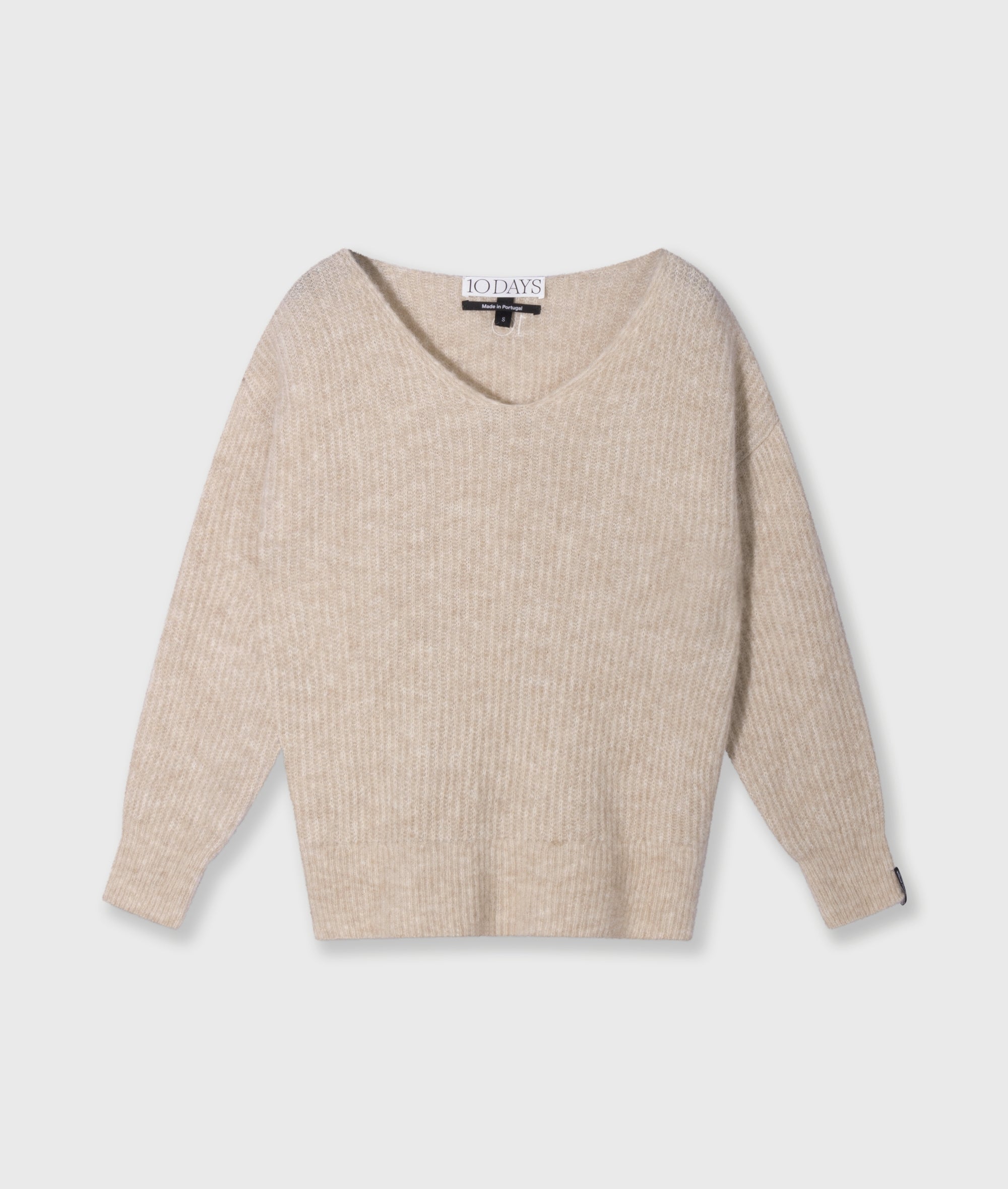 Regular fit V-neck knitted jumper, made from a soft alpaca wool blend. Features ribbed hem and cuffs, a tagline label at the bottom of the left sleeve and a ’10’ monogram embroidery on the back.|