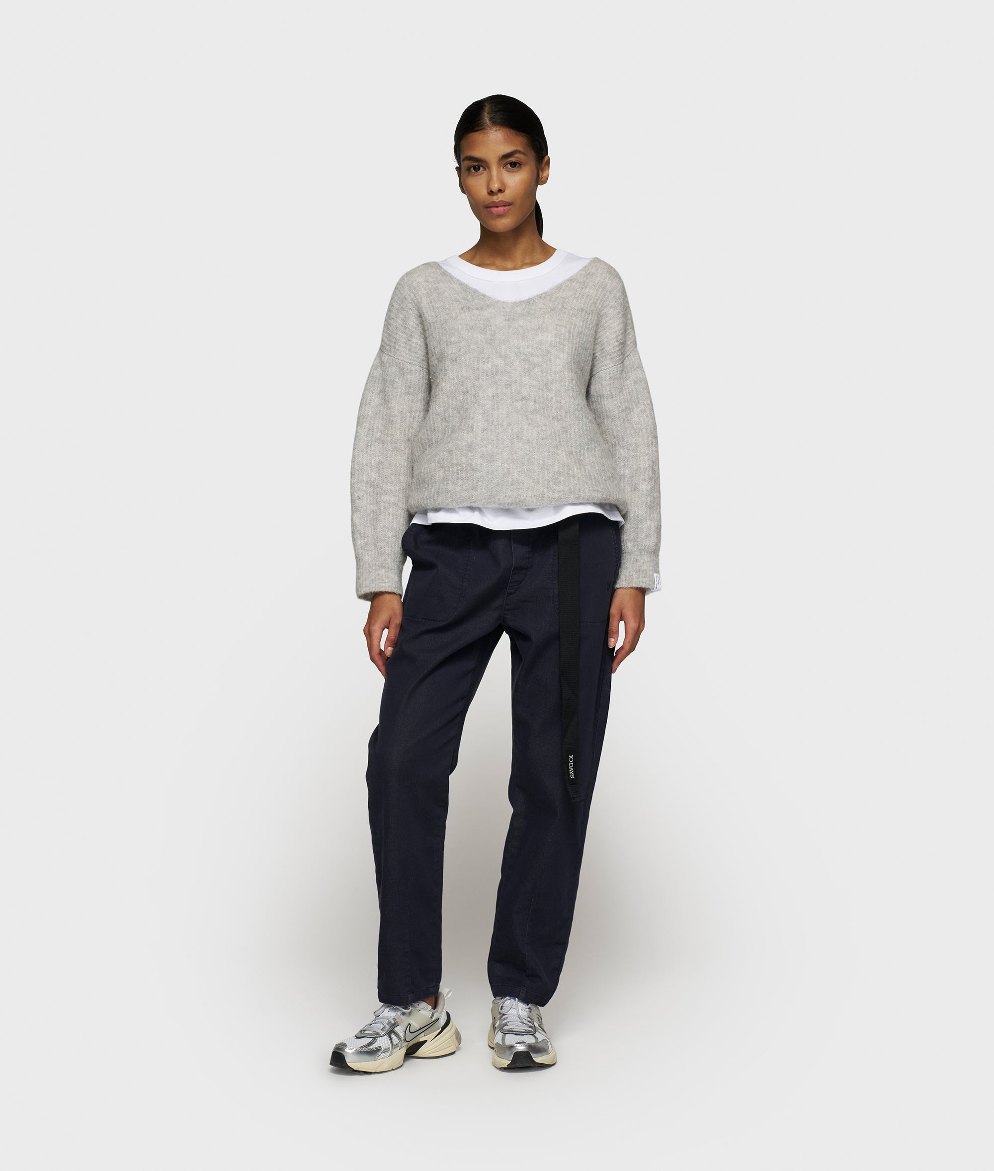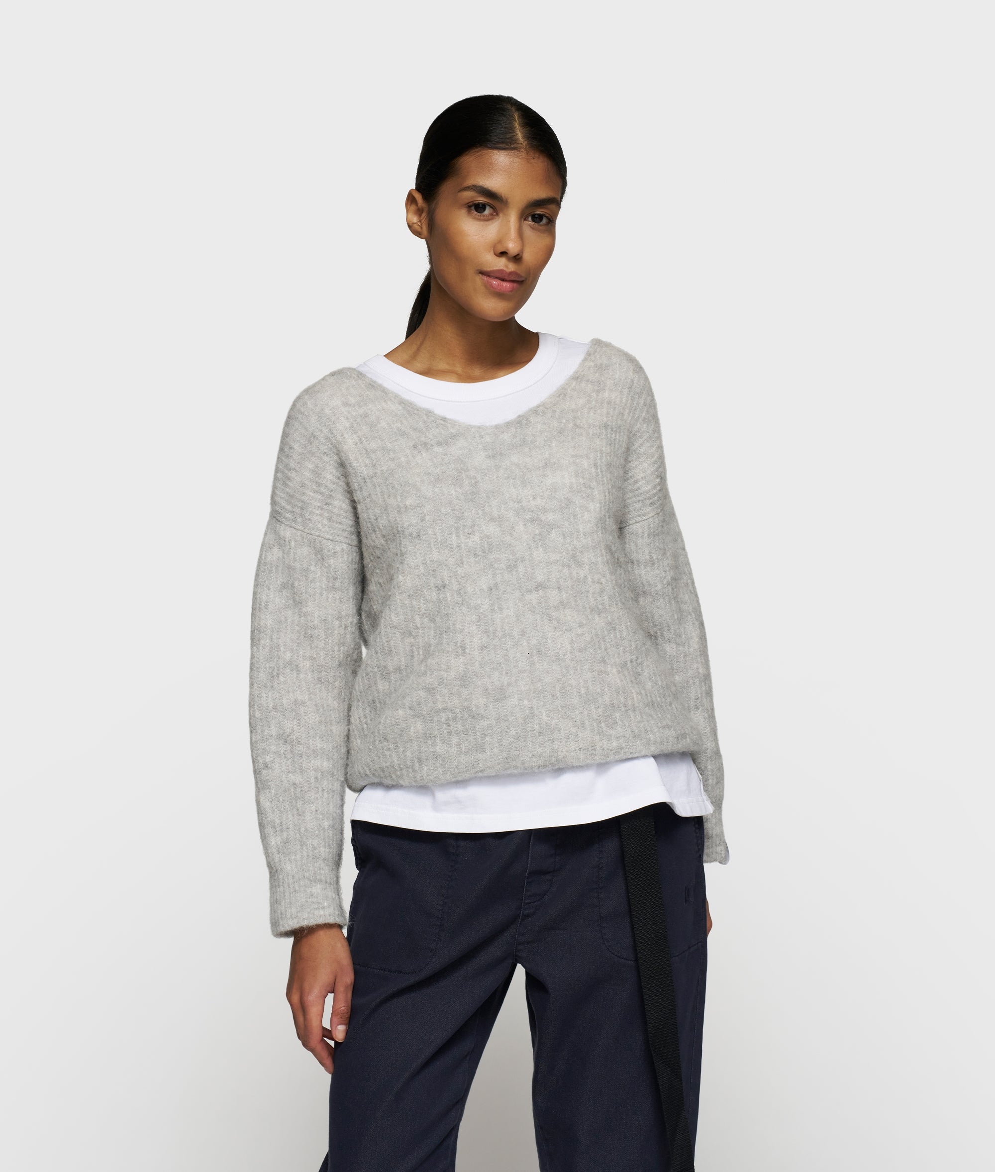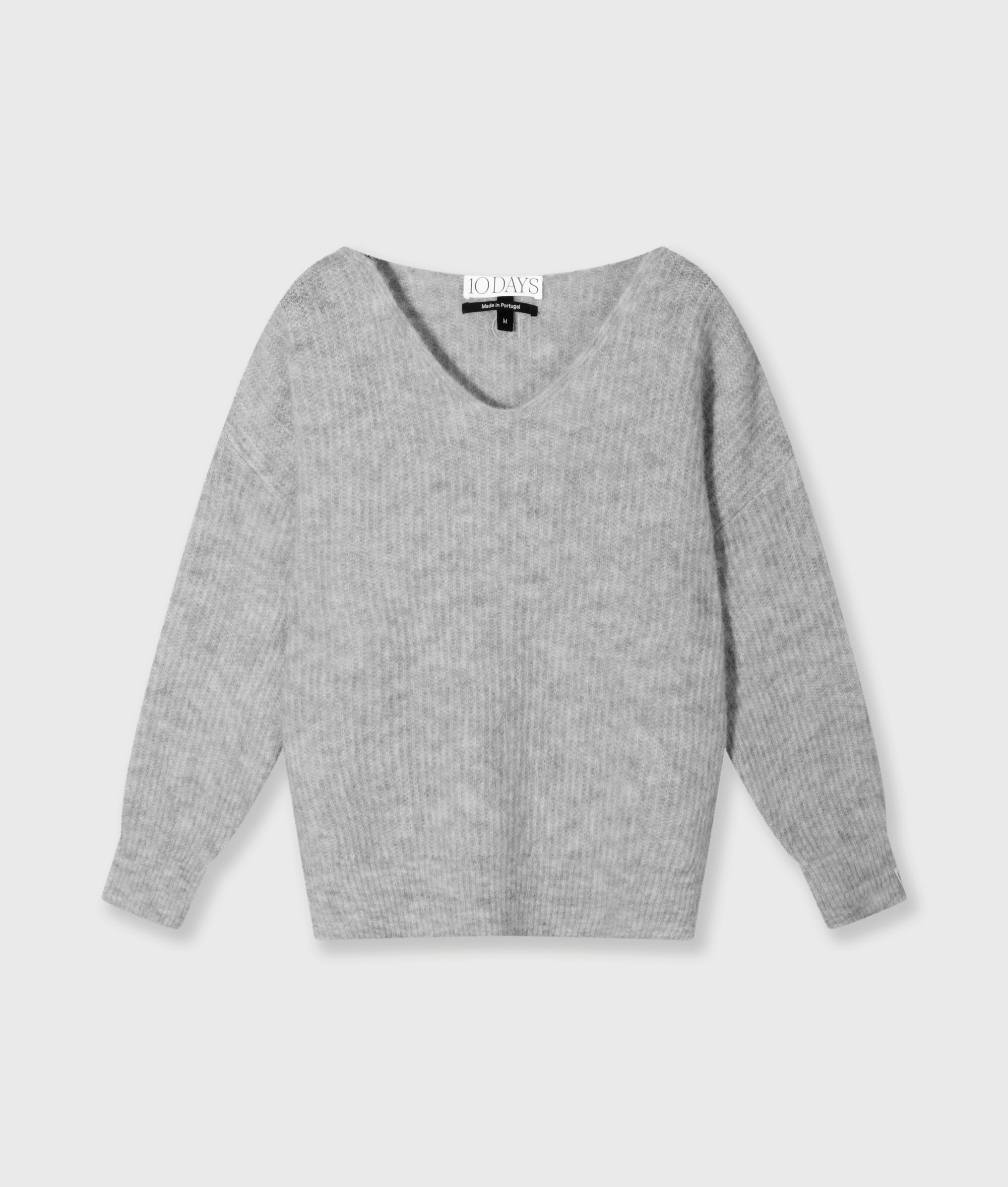 10DAYS Women’s Soft V-neck Sweater Knit | Light Grey Melee | Light Grey Melee