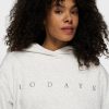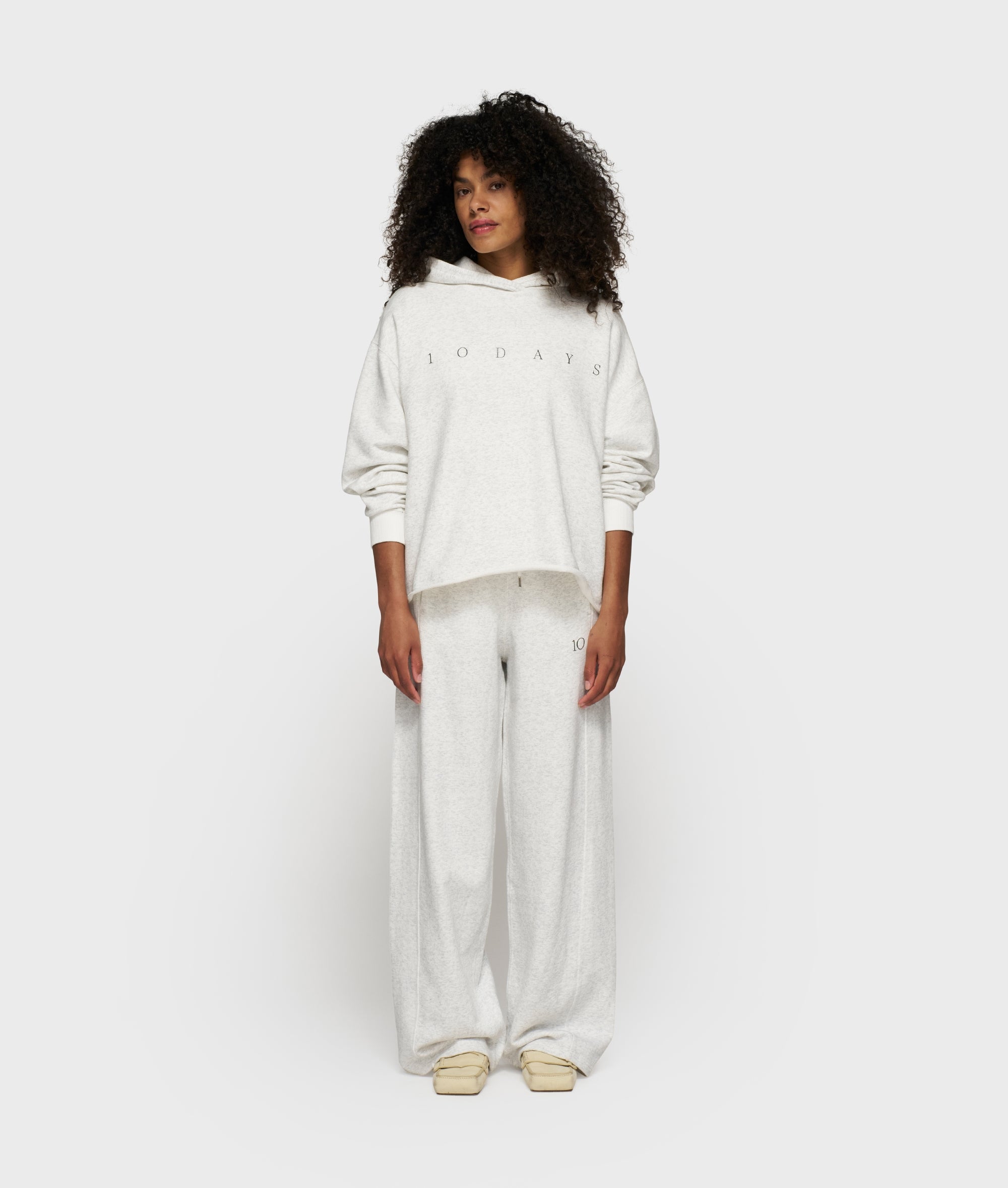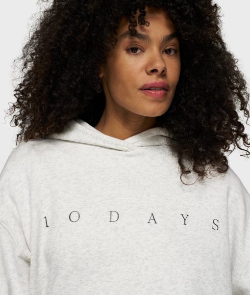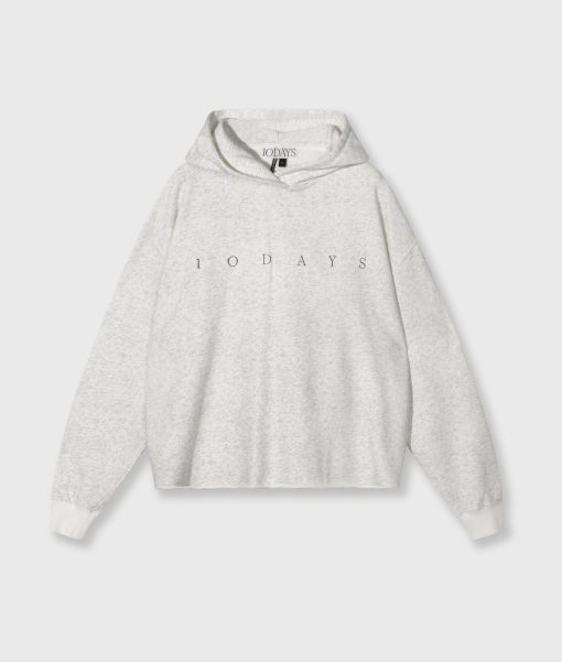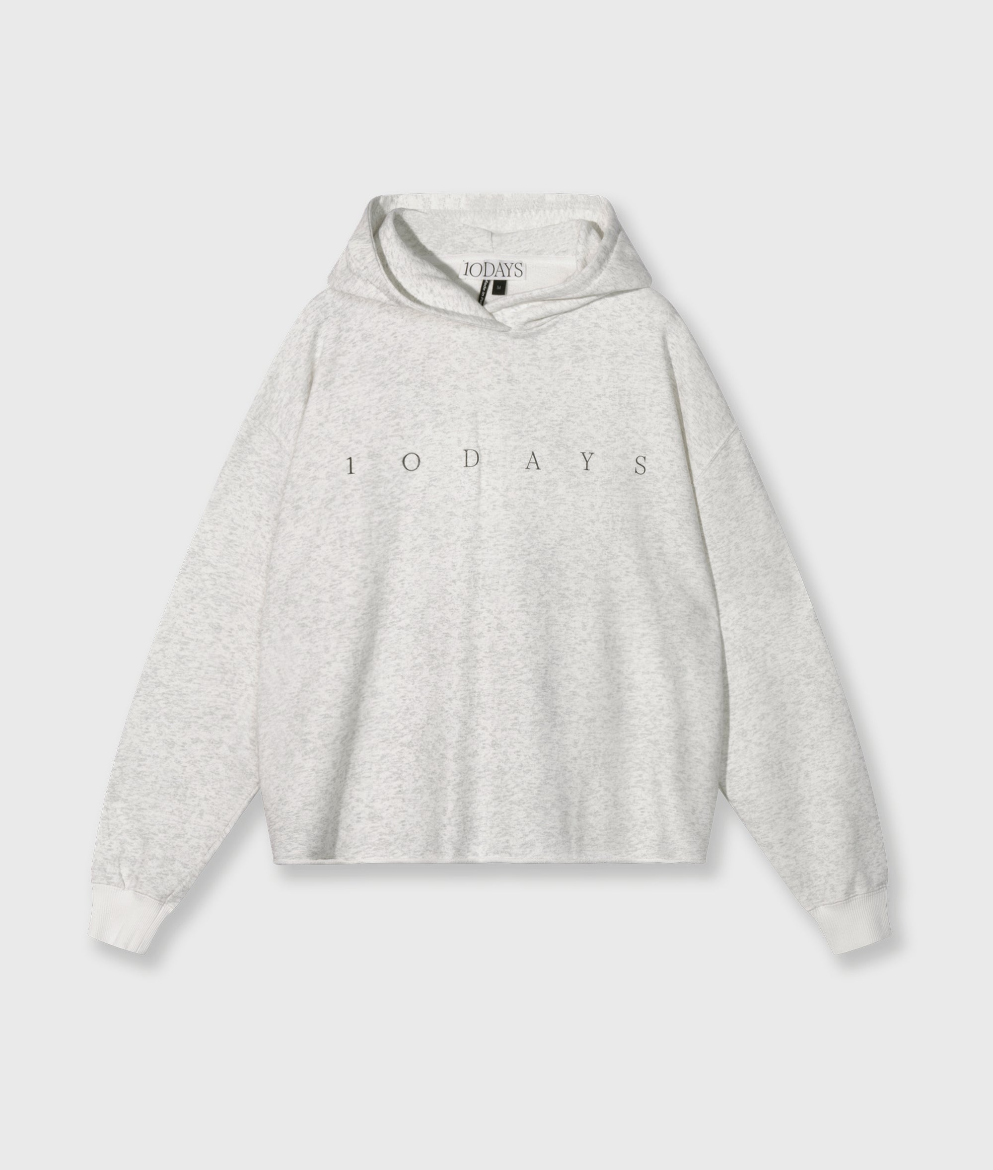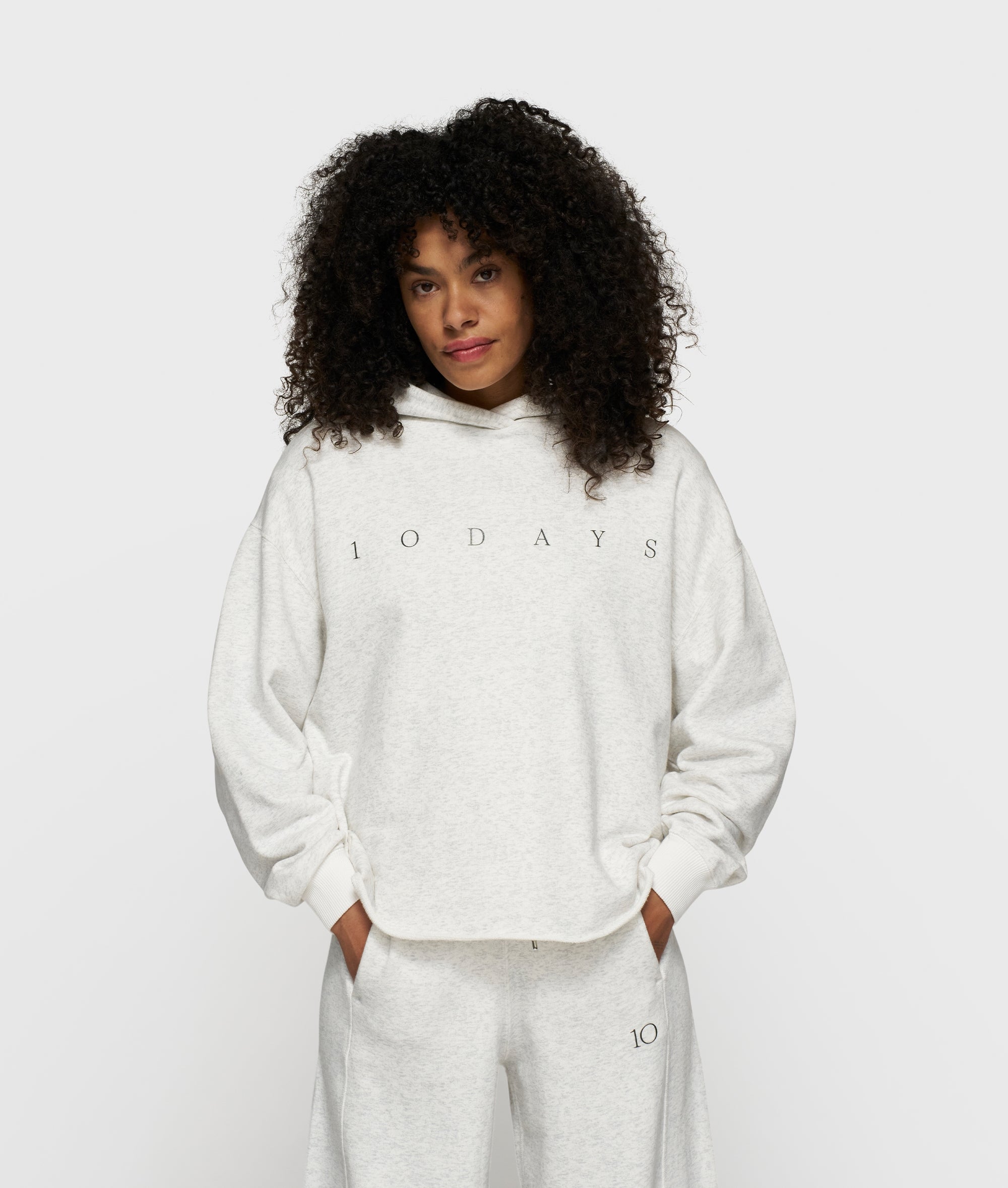 Relaxed fit cropped statement hoodie made from soft cotton. Features a hood, a raw edge hem, rib-knit cuffs and a ‘clean 10DAYS’ box print on the chest.|