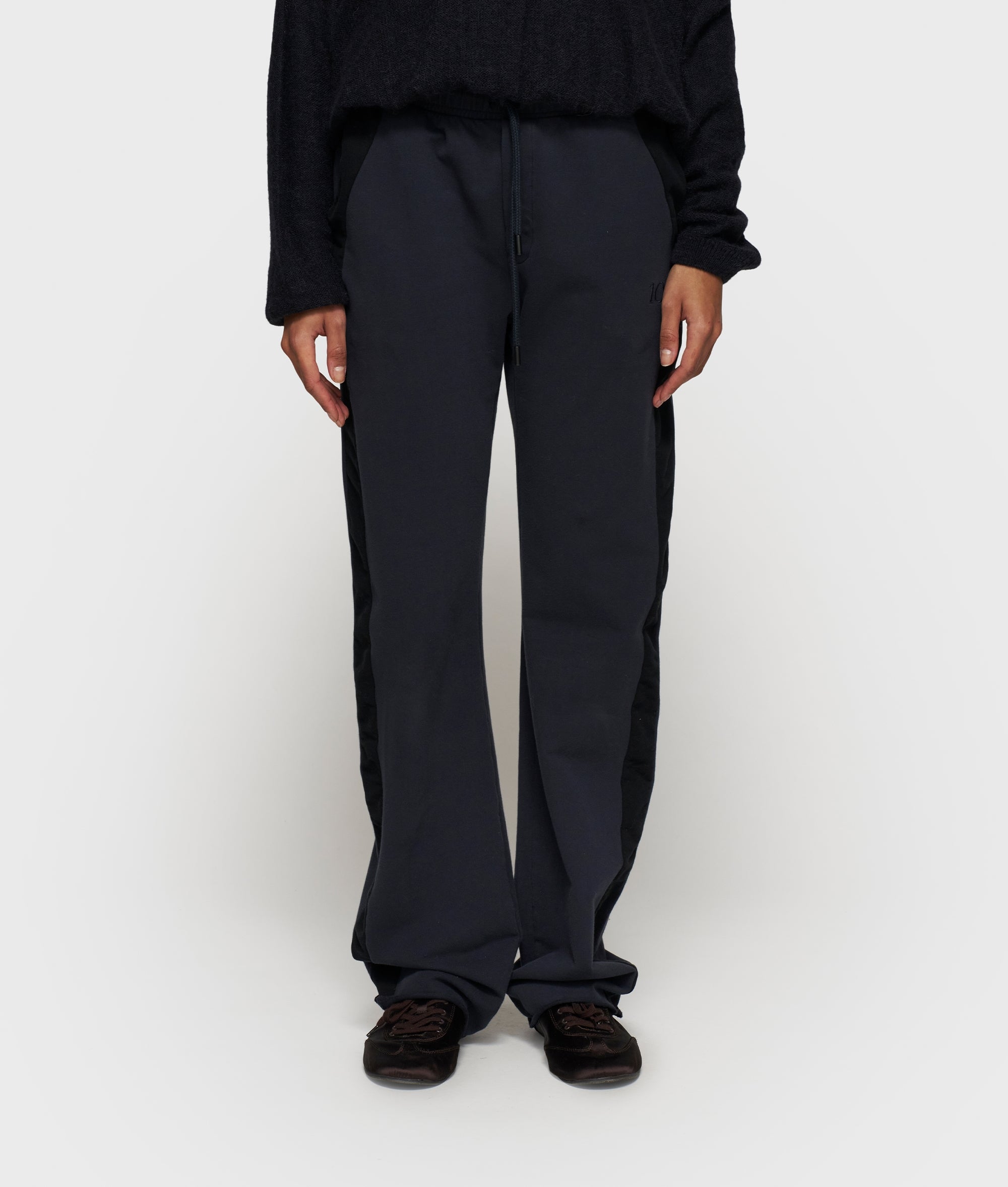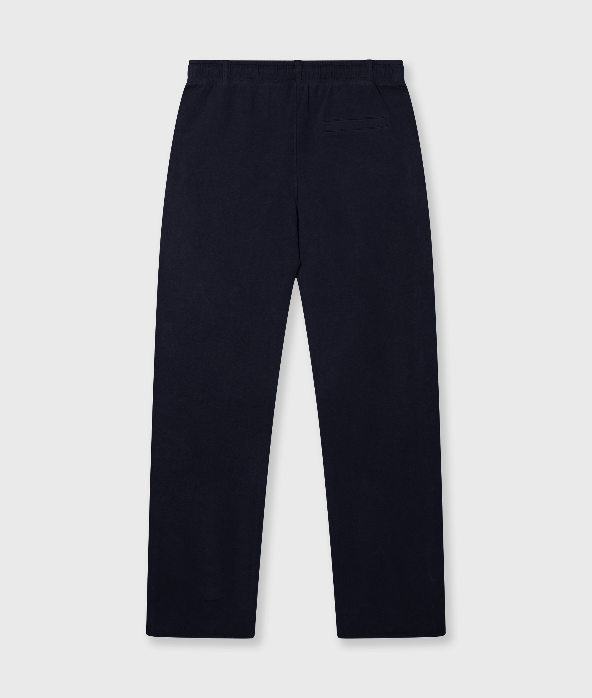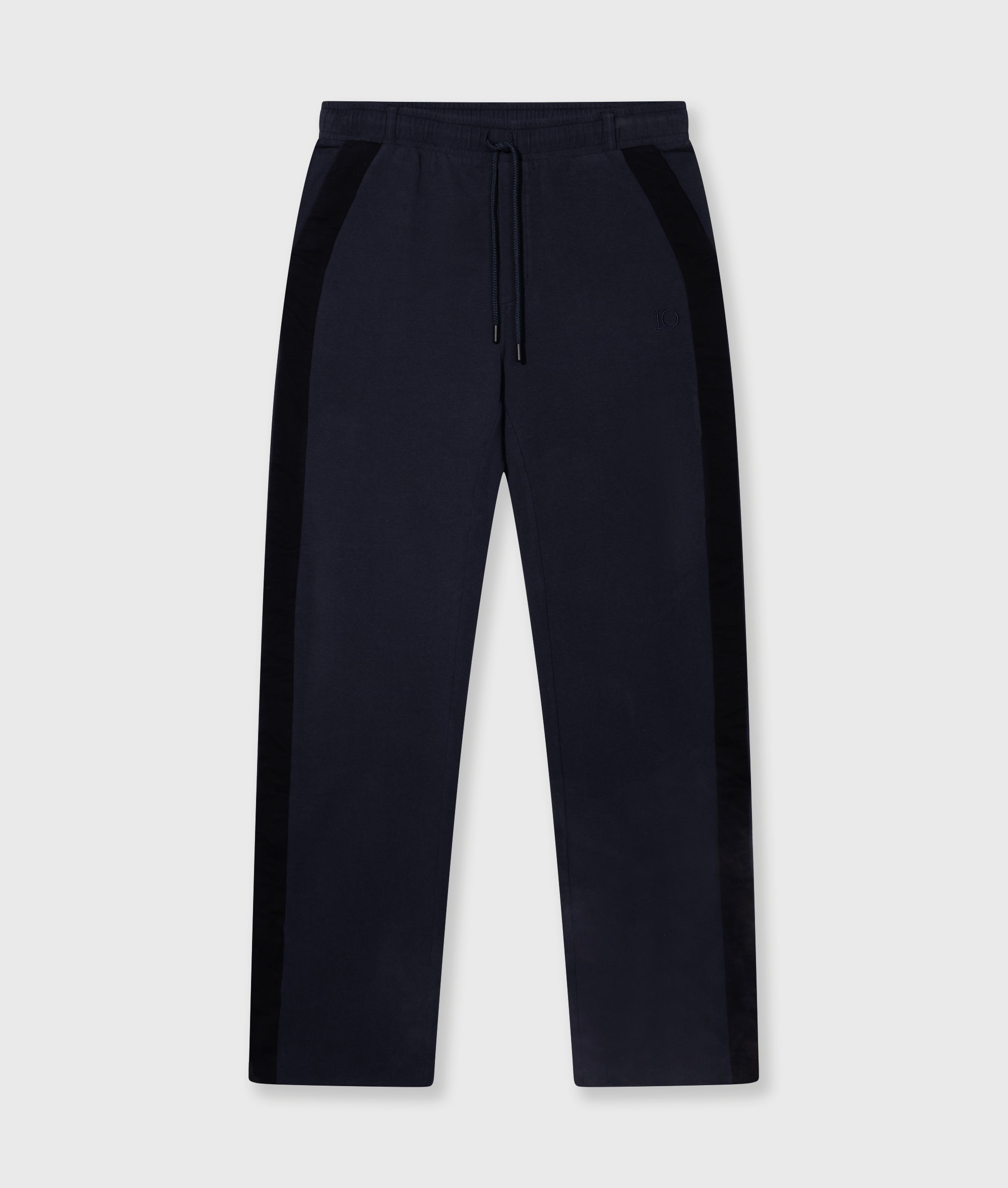 Regular fit jogger with straight legs, made from GOTS-certified organic cotton. Features an elastic waistband with drawstring, slanted side pockets, a fake back pocket, raw edge leg hems, tape details along the side seams and a ’10’ monogram embroidery below the left front pocket.|