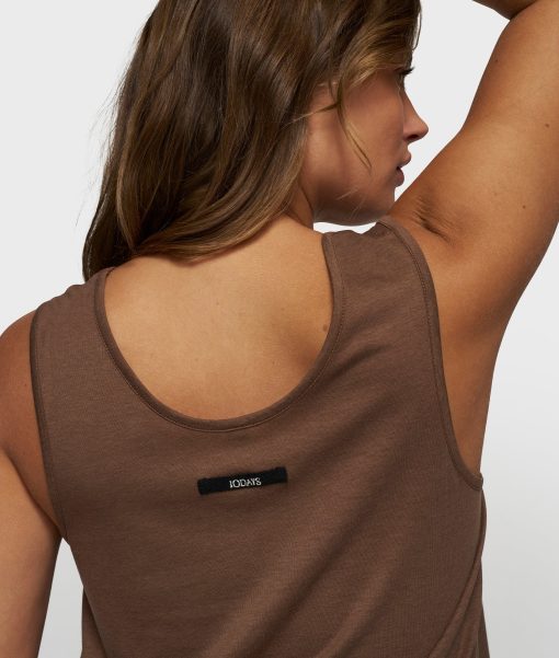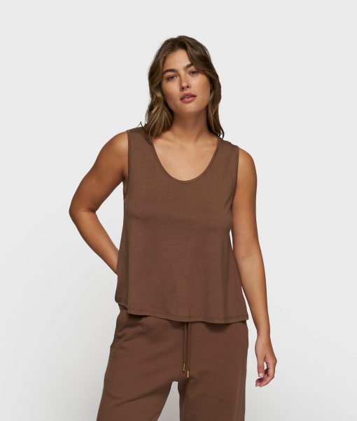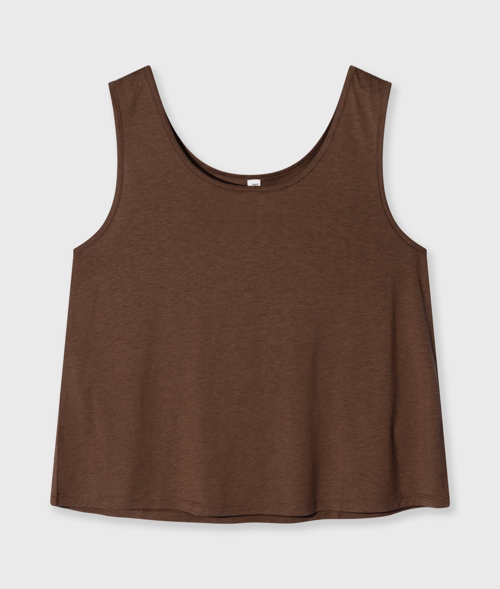Slim fit tank top made from lyocell jersey. Designed with a round neckline and armholes finished with self-fabric binding. Detailed with a logo label at the centre back below the neckline.|
