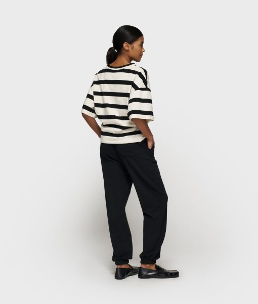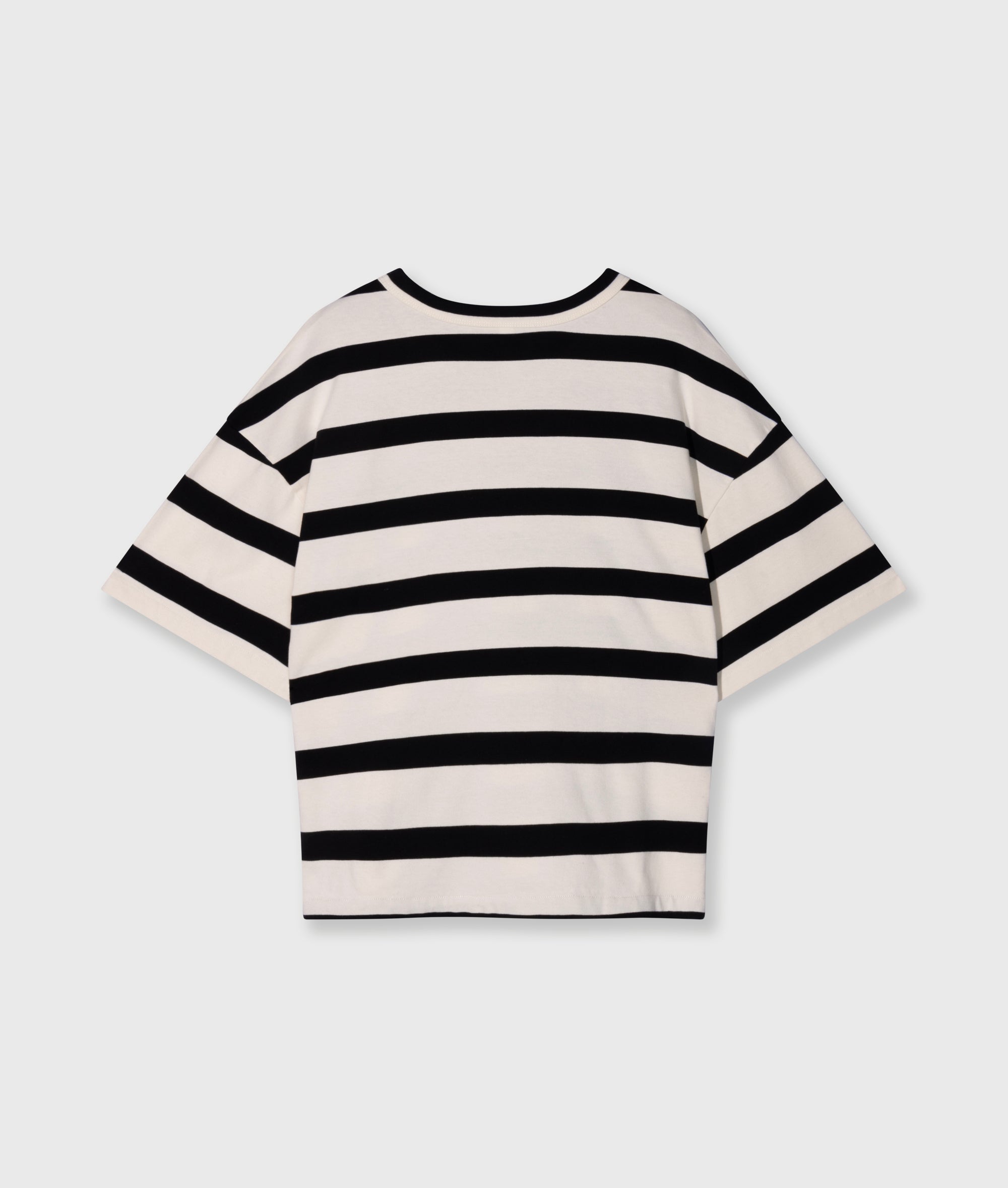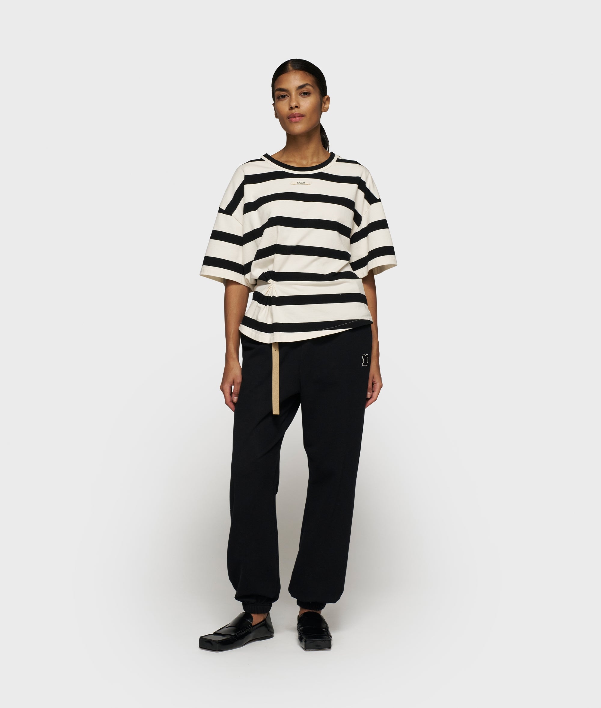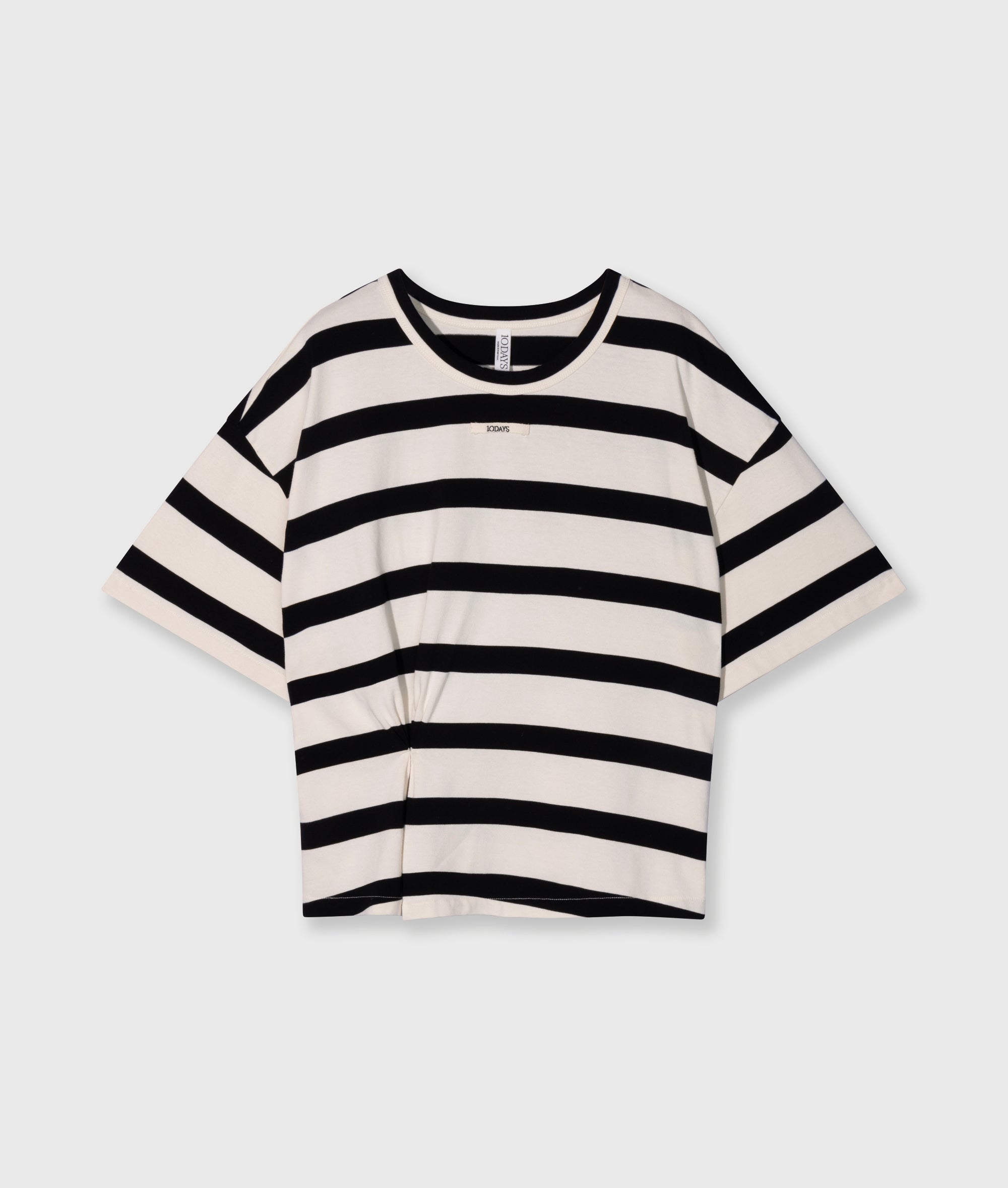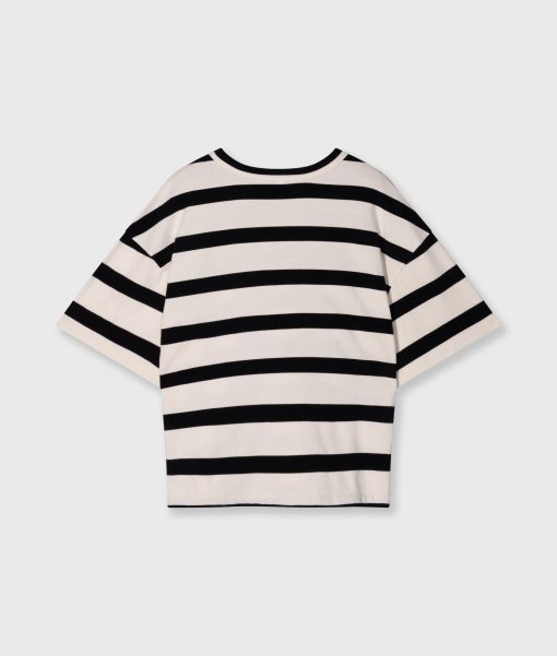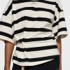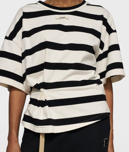 10DAYS Women’s Tee Gathering Stripes | Ecru/black | Ecru & Black