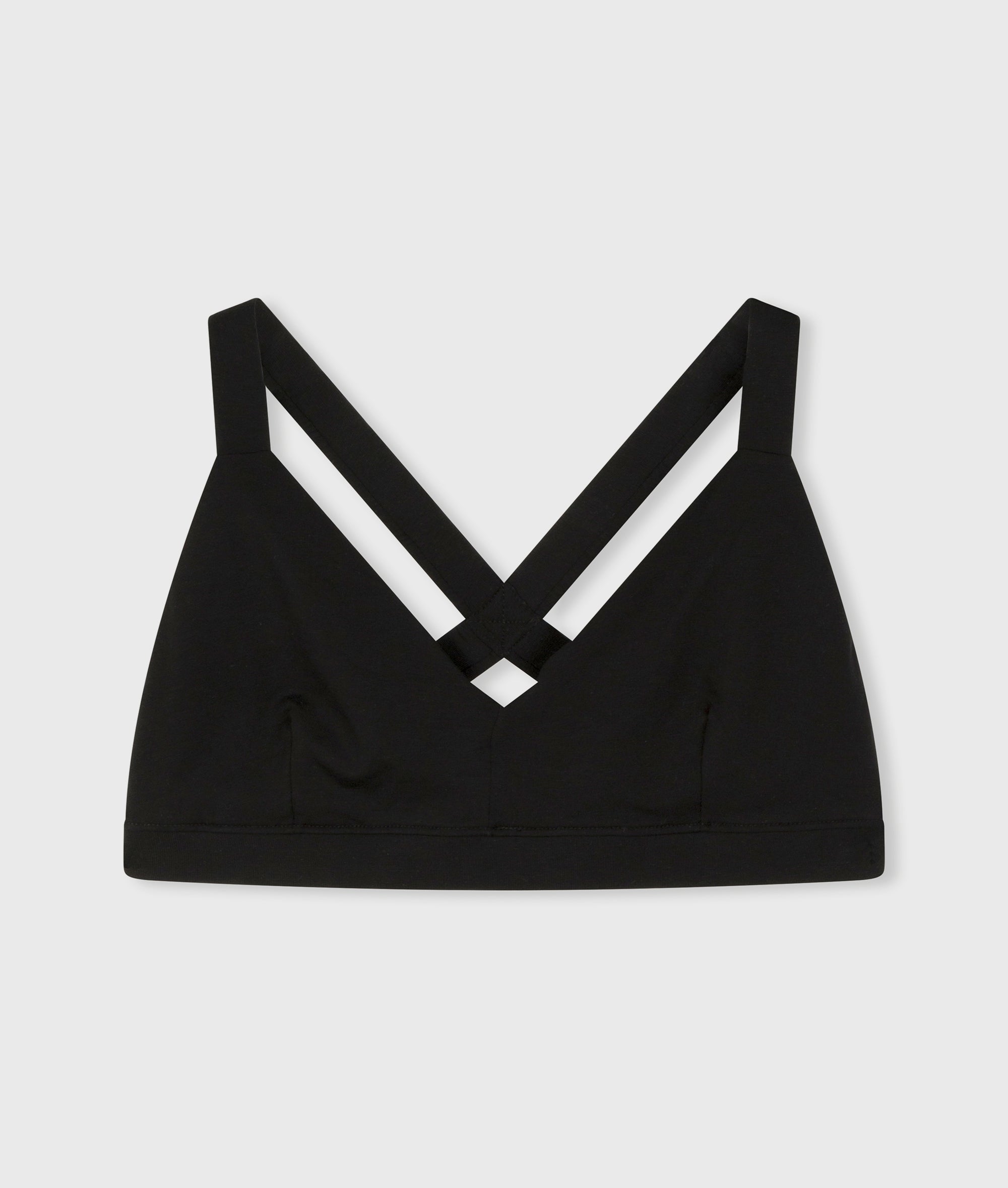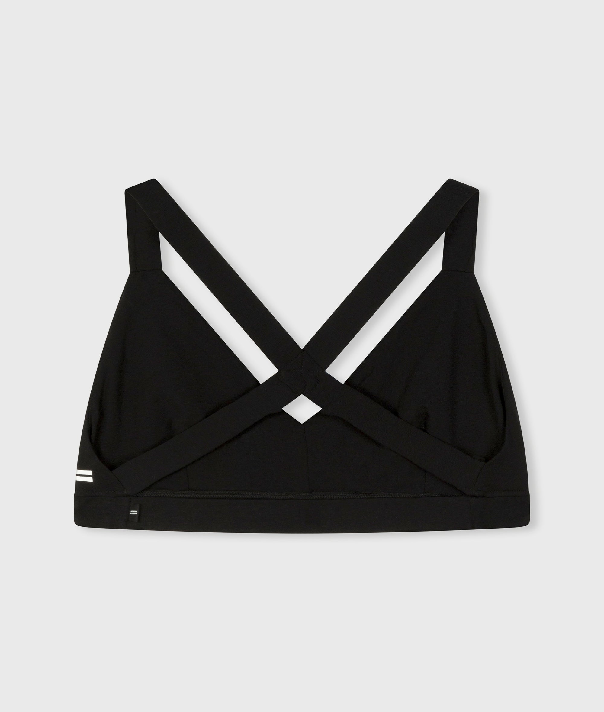 Sporty bra top with crossed straps at the back, made of a organic cotton blend. Features a mini stripes logo and sufficient stretch and support. The perfect fit, both sporty and casual.|