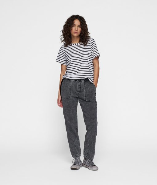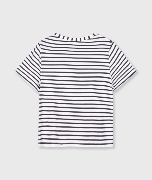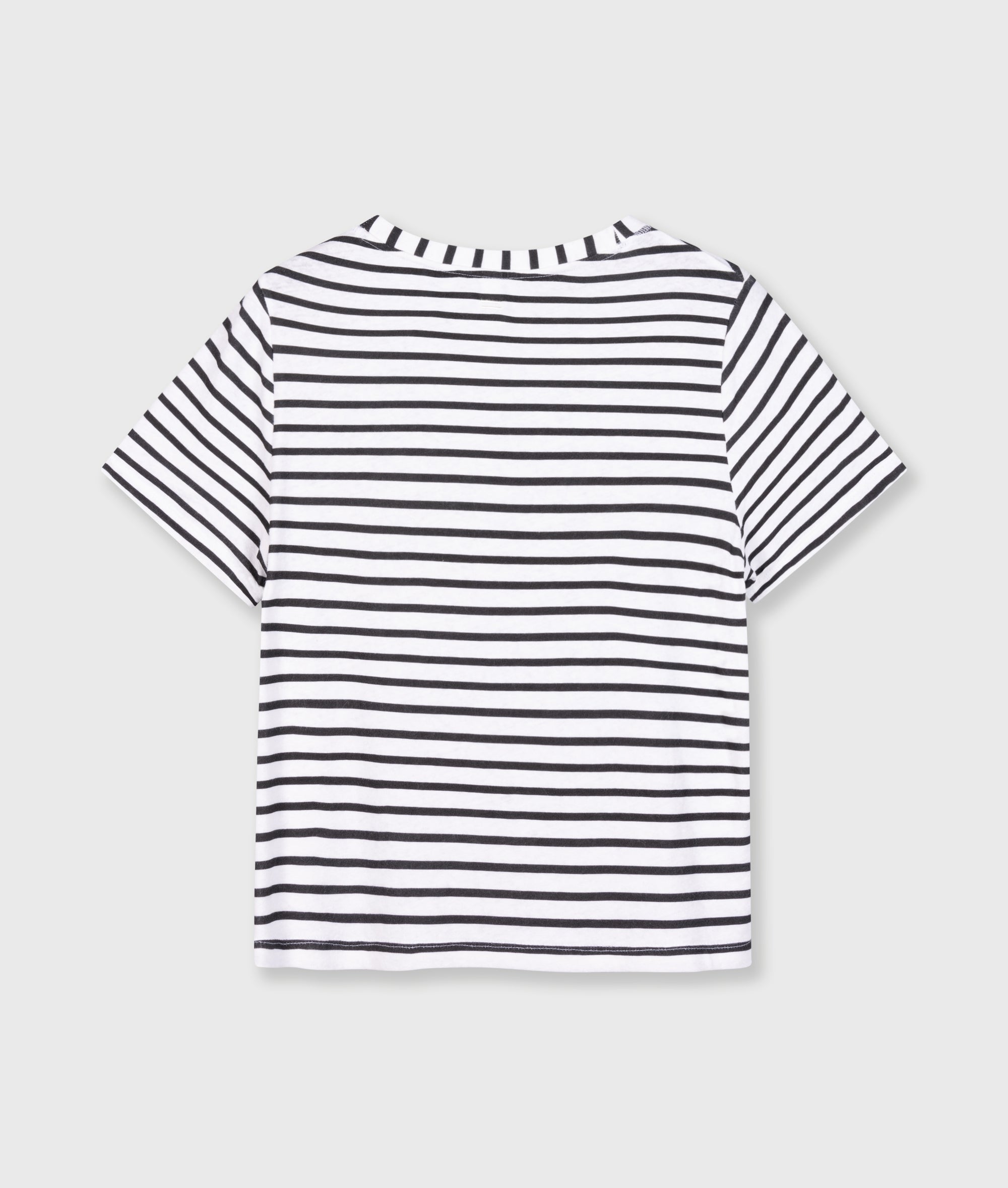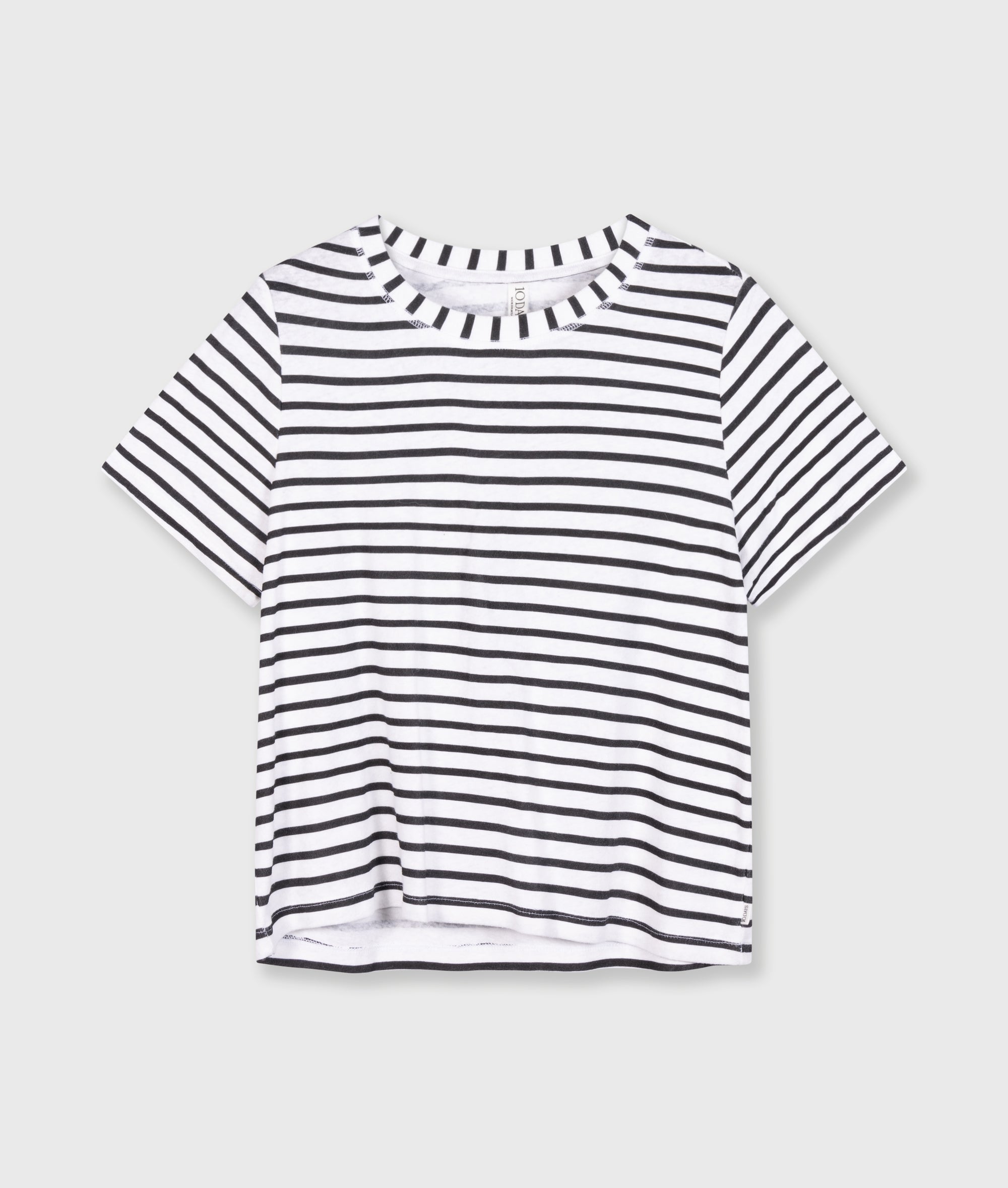 Regular fit striped T-shirt, made of a cotton and linen blend jersey. With a round neck and a mini stripes logo embroidery on the back.|