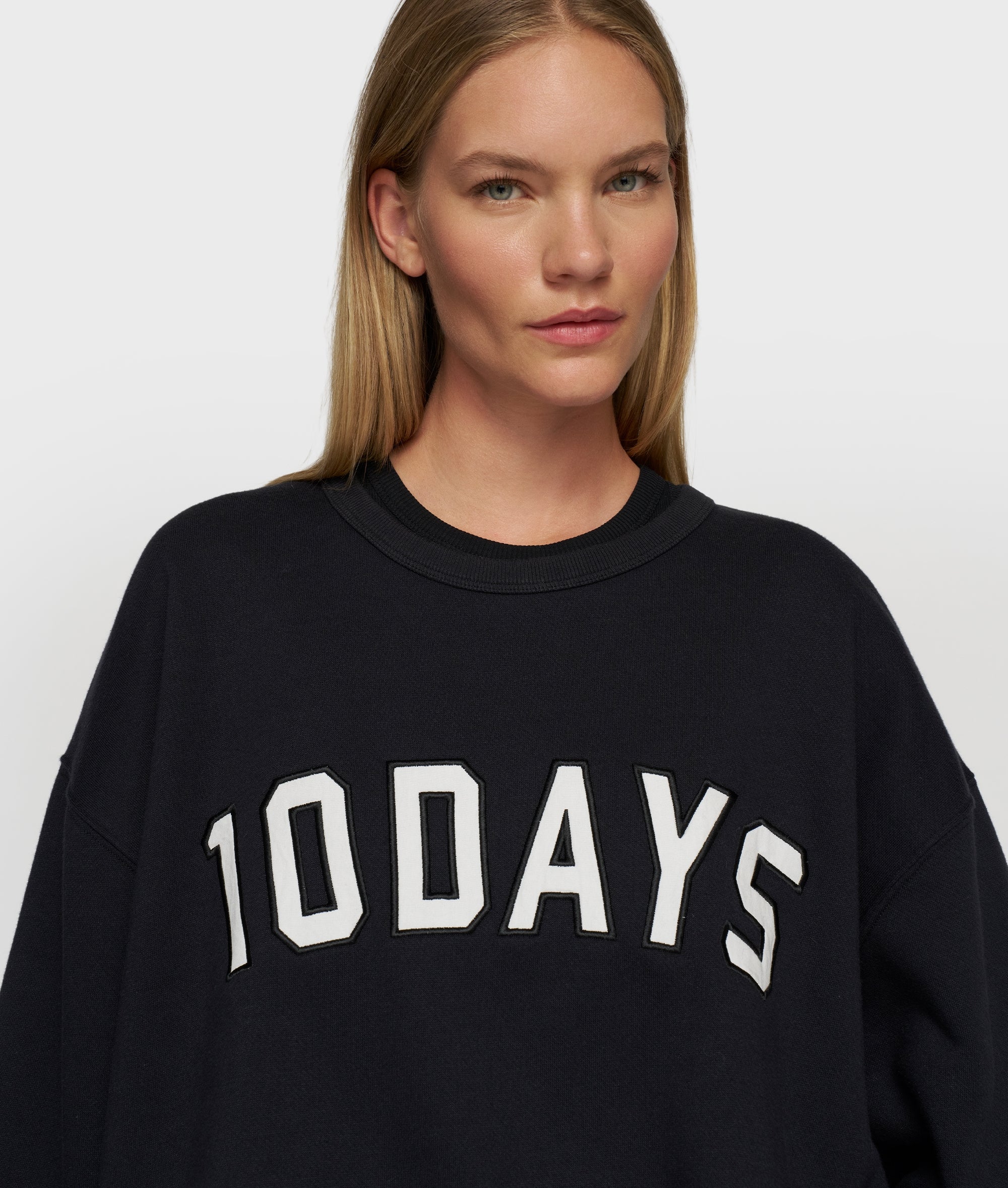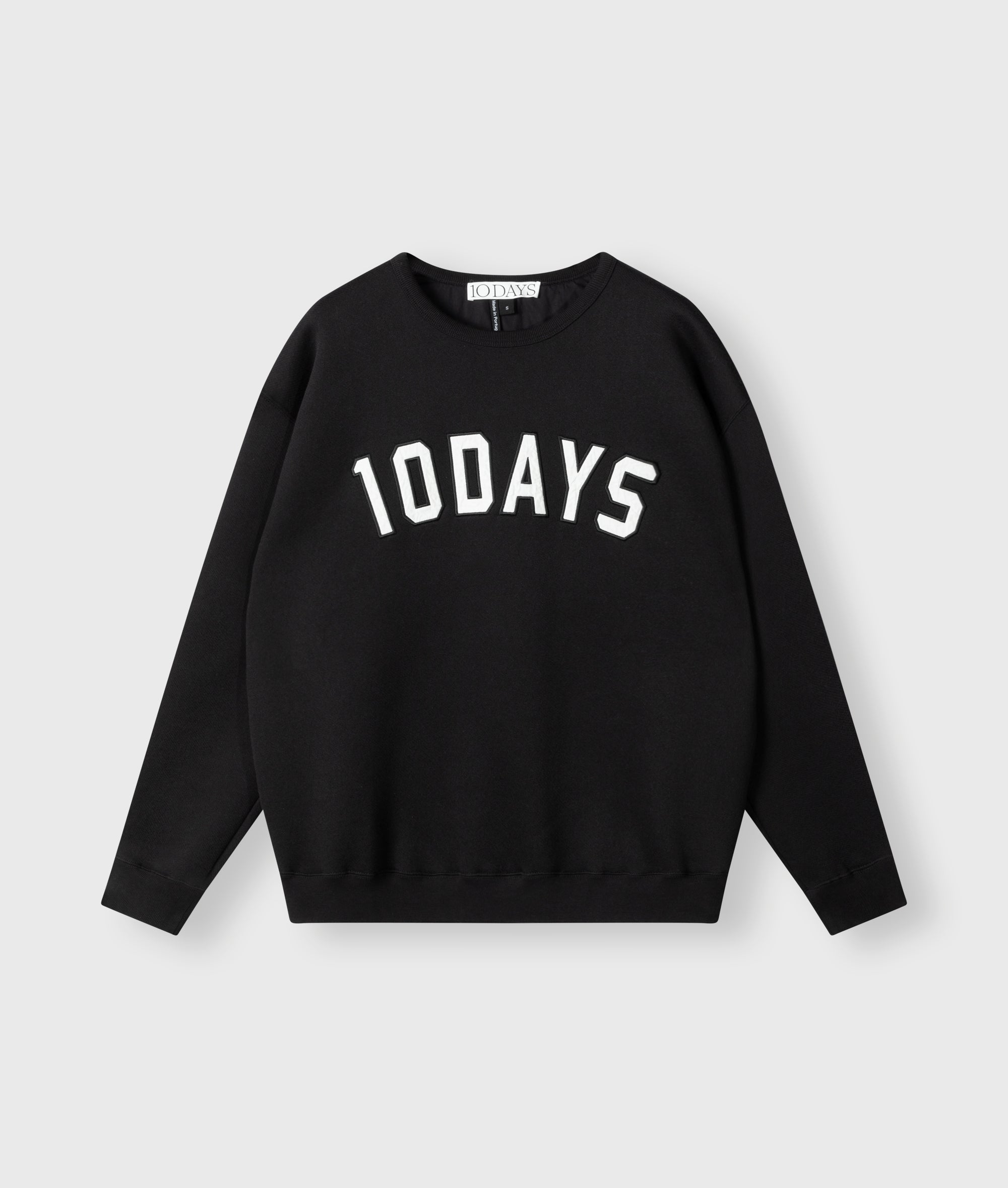 Oversized fit statement sweater, made of thick brushed cotton and polyester blend. Features a felt baseball 10DAYS logo patch on the chest, a round rib knitted neck and rib knitted edges at the cuffs and hem.|