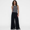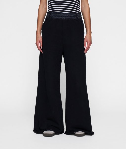 Relaxed fit wide leg joggers, made of soft cotton. Featuring an elasticated satin waistband, belt loops, patch pockets and a mini stripes logo embroidery on the left pocket.|