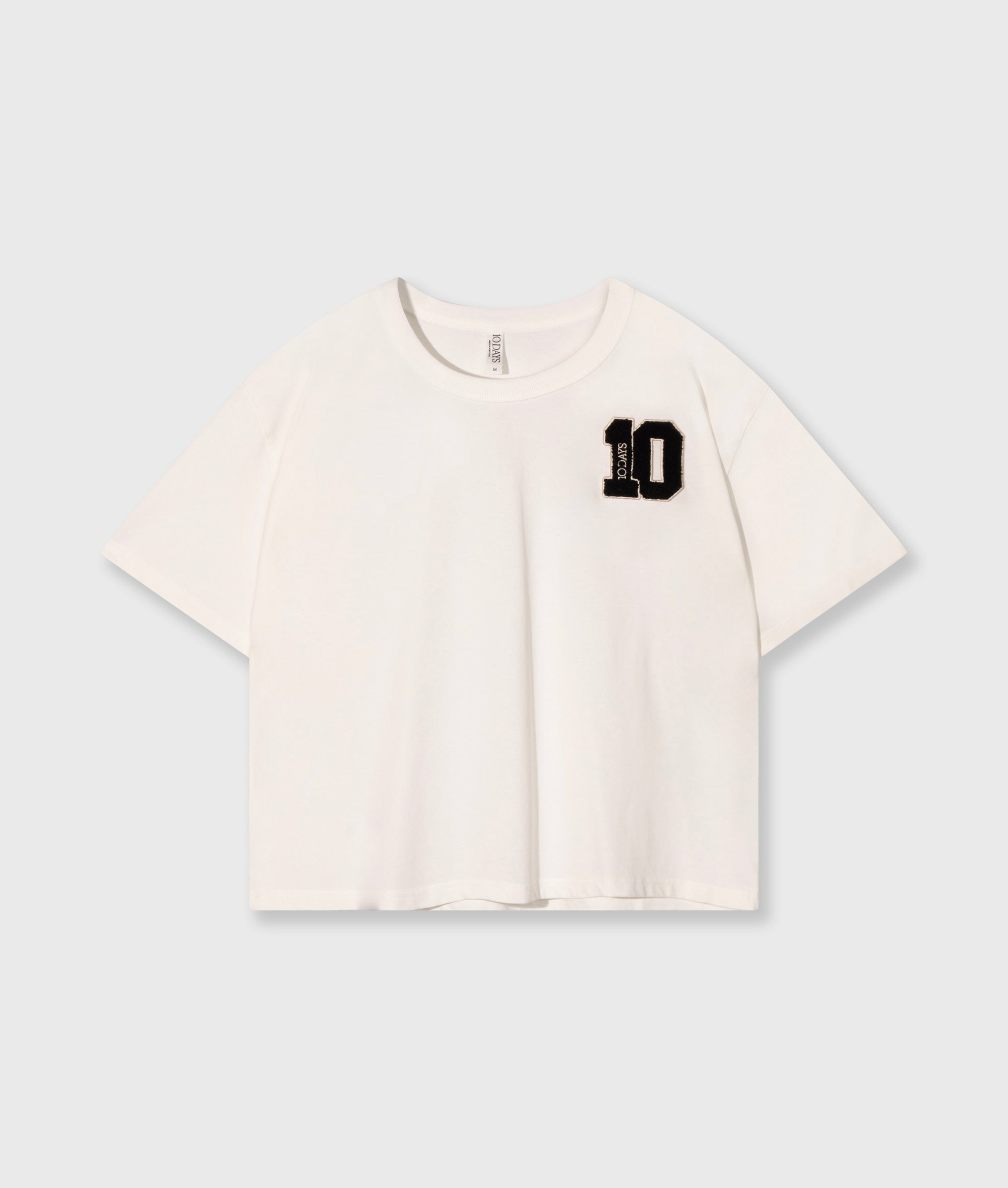 Regular fit T-shirt, made from firm GOTS-certified organic cotton. Features a ribbed crew neckline, mini stripes logo embroidery on the back and a medium ’10’ patch on the left chest.|
