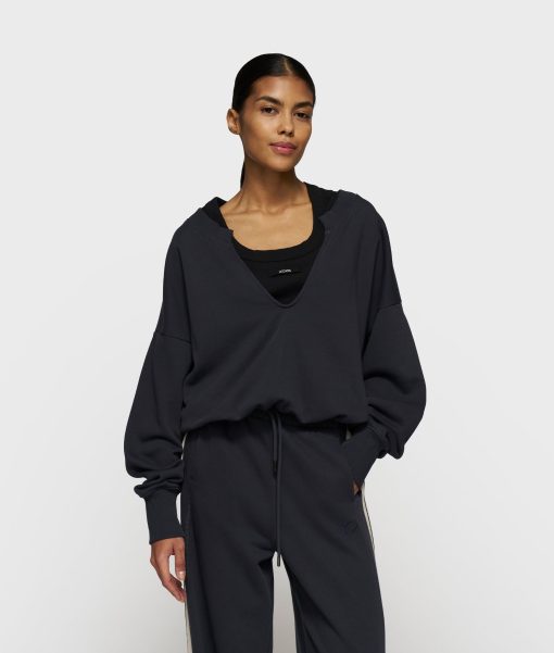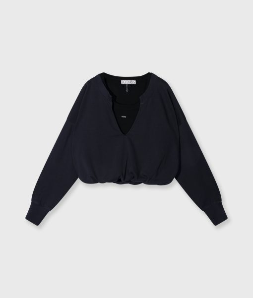 Relaxed fit V-neck sweater, made from soft cotton fleece. Features a fixed inner tank top with a round neckline, a balloon-shaped hem, ribbed trims and a ’10DAYS’ canvas label on the front of the tank top.|