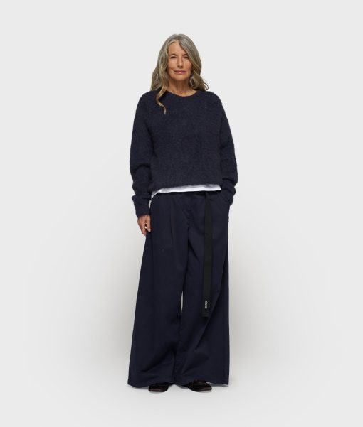 Regular fit trousers with wide legs, made from GOTS-certified organic cotton. Designed with an elasticated waistband with cotton belt, slanted front pockets and a ’10’ monogram logo embroidery below the left front pocket. Additional accessory material: 100% cotton|